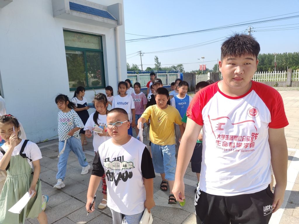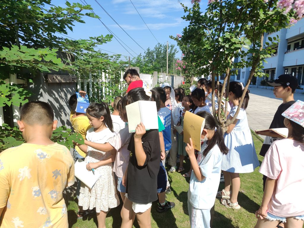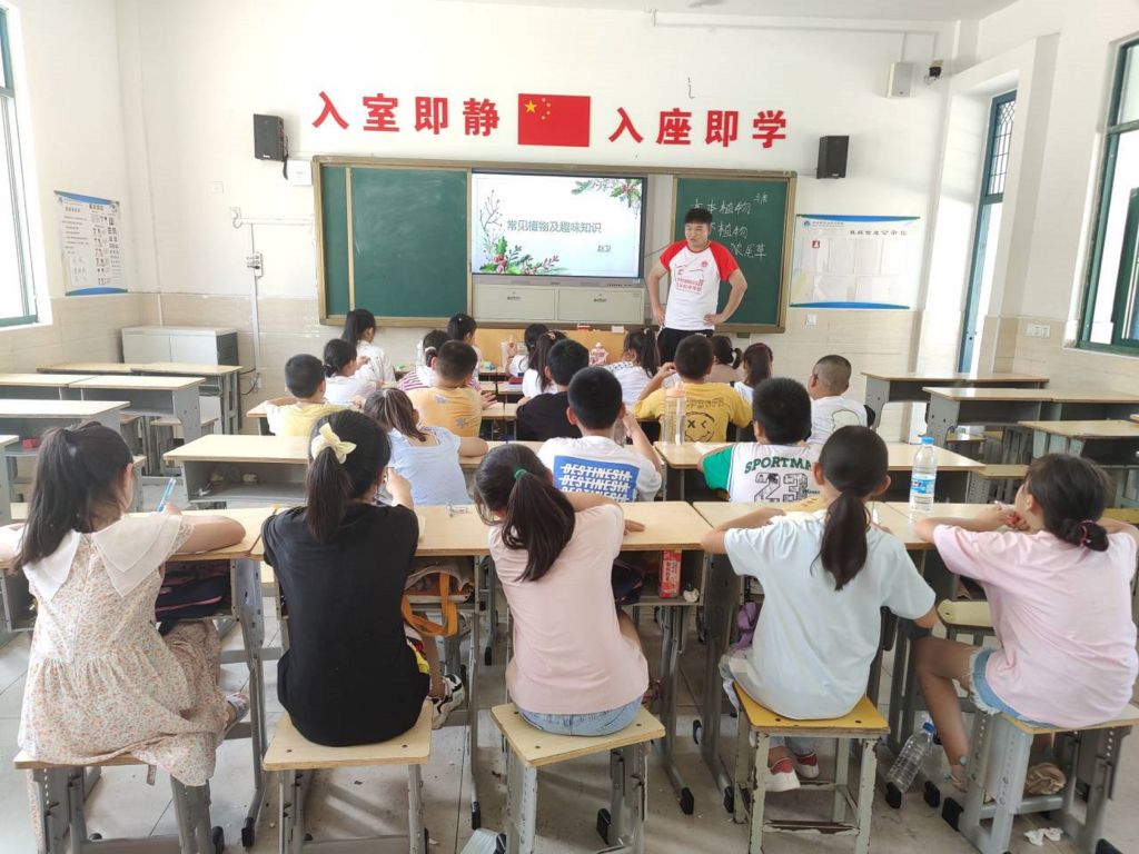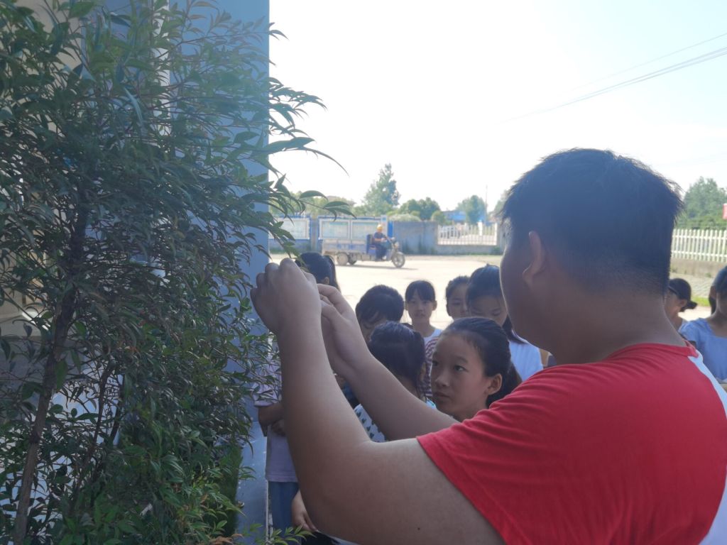 本网讯(生科院 袁闻才)为丰富乡村儿童的暑期生活,增强孩子们对植物的认识,提升孩子们对大自然的兴趣。生科院赴当涂C.“江心比心”爱心支教本科生社会实践团队于2022年7月10日上午在江心中心学校开展了野外植物识别课。团队成员赵卫、夏鹏程、张硕、朱峻魄和25名学校学生参与本次课程,赵卫为校内植物识别课的主讲人,夏鹏程、张硕和朱峻魄为助课教师。