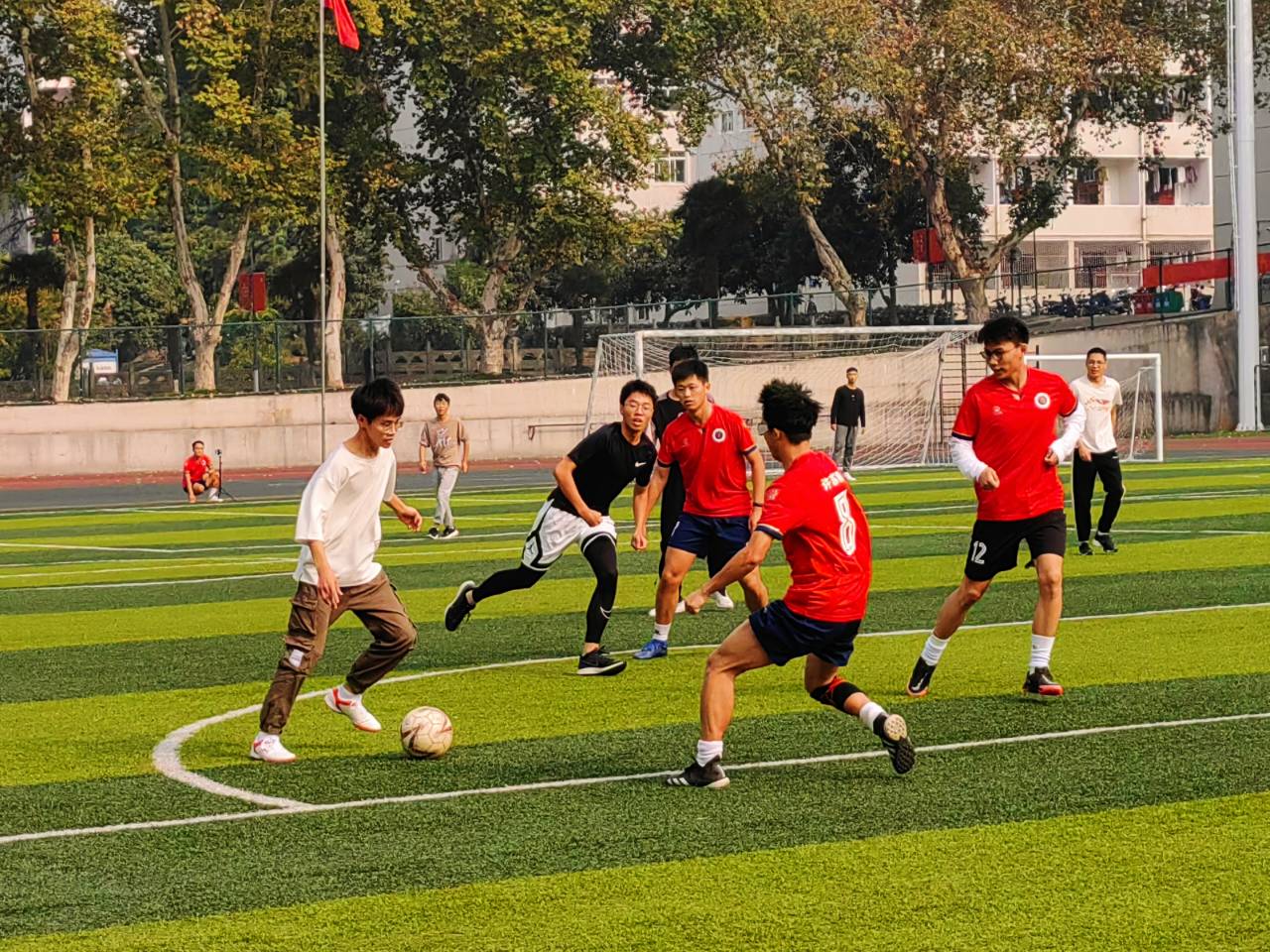 为庆祝党的二十大胜利召开、迎接学校第51届田径运动会,10月23日上午,76net必赢线路检测中心2022级生物科学专业男子足球队队与学校兄弟学院联队举行了一场足球友谊赛。比赛中,同学们赛出青春、比出友谊,最终握手言和。
