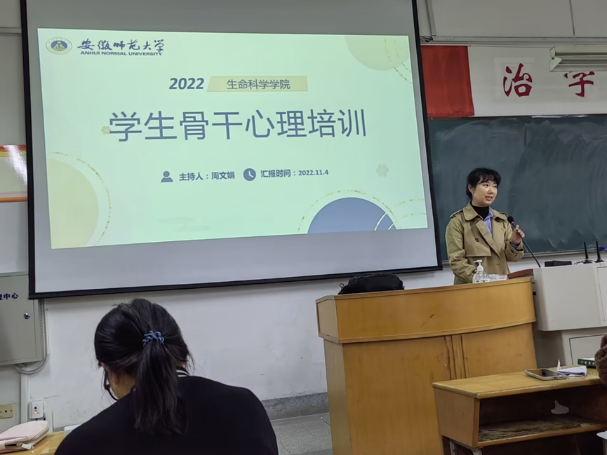 学生干部是学校心理健康教育队伍不可或缺的重要成员,在传播心理健康知识、朋辈互助、危机预警等方面发挥着至关重要的作用。学生干部要协助老师深入、及时地了解班级同学的心理状况,做到早发现、早预防,在遇到突发事件要在第一时间与老师取得联系,筑牢班级心理工作的第一道防线。因此,对学生干部的心理培训至关重要。11月4日晚,生科院发展辅导站22级新生骨干心理健康教育培训讲座在田楼8304教室举办。活动由辅导站站长周文娟主持,校心理健康中心助教邹孔伟老师担任主讲嘉宾。邹老师用亲身经历告诉同学们可以通过自主学习、“抱团取暖”、享受孤独几个方面去适应大学生活。通过讲解“内部空间和外部空间”引导同学们去建立良好的人际关系。培训讲座进一步让新同学适应校园生活、深入了解自己等方面获得启发,得到了同学们的一致好评。