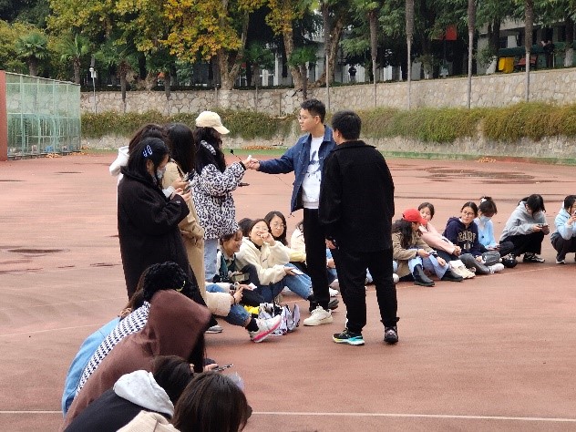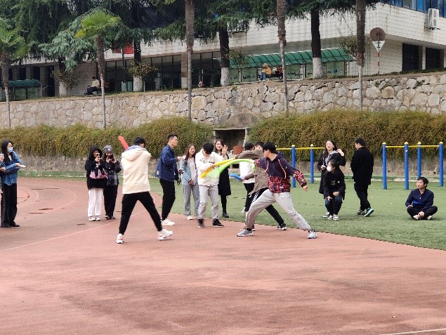 部分专业和班级还开展了有益于身心健康的趣味活动,在操场上一同开展了丰富多彩的心理健康活动。在心理委员的组织下,同学们在活动前写下近期令自己高兴的事情,围成一圈共同分享这些快乐。同学们积极参加“萌宠落谁家”、“蒙眼打人”和“坚守阵地”等小游戏。在娱乐的同时,大家彼此增进了感情,获得了快乐。这次的活动缓解了同学们期中考试后的紧张心情,调整了心理状态,同时也教会了同学们一些人际交往与缓解焦虑的小技巧。
