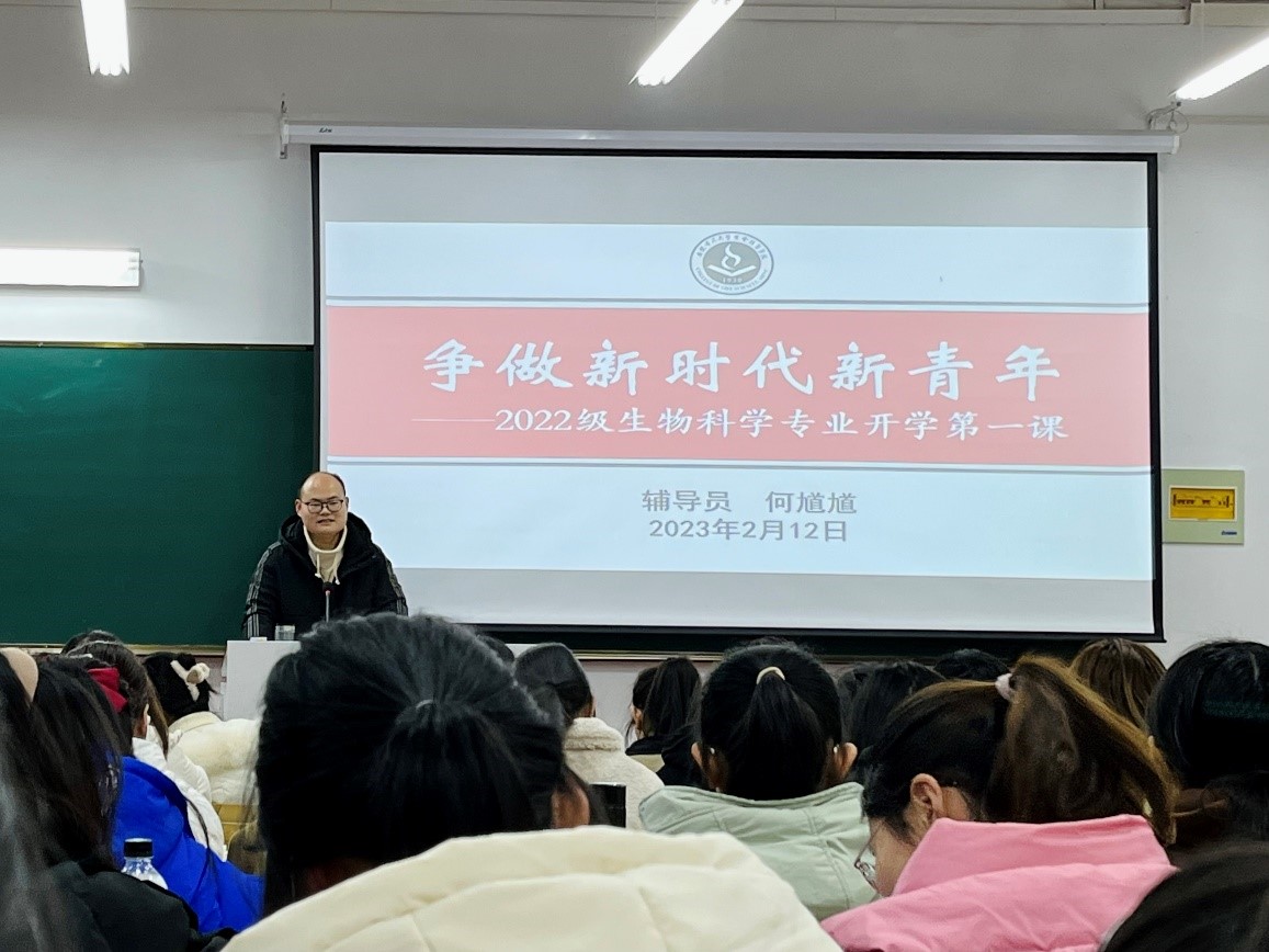 212日,76net必赢线路检测中心2022级生物科学专业在14031409教室依次召开开学第一课班会。班会由辅导员何馗馗主讲。2022级生科专业全体同学参加。