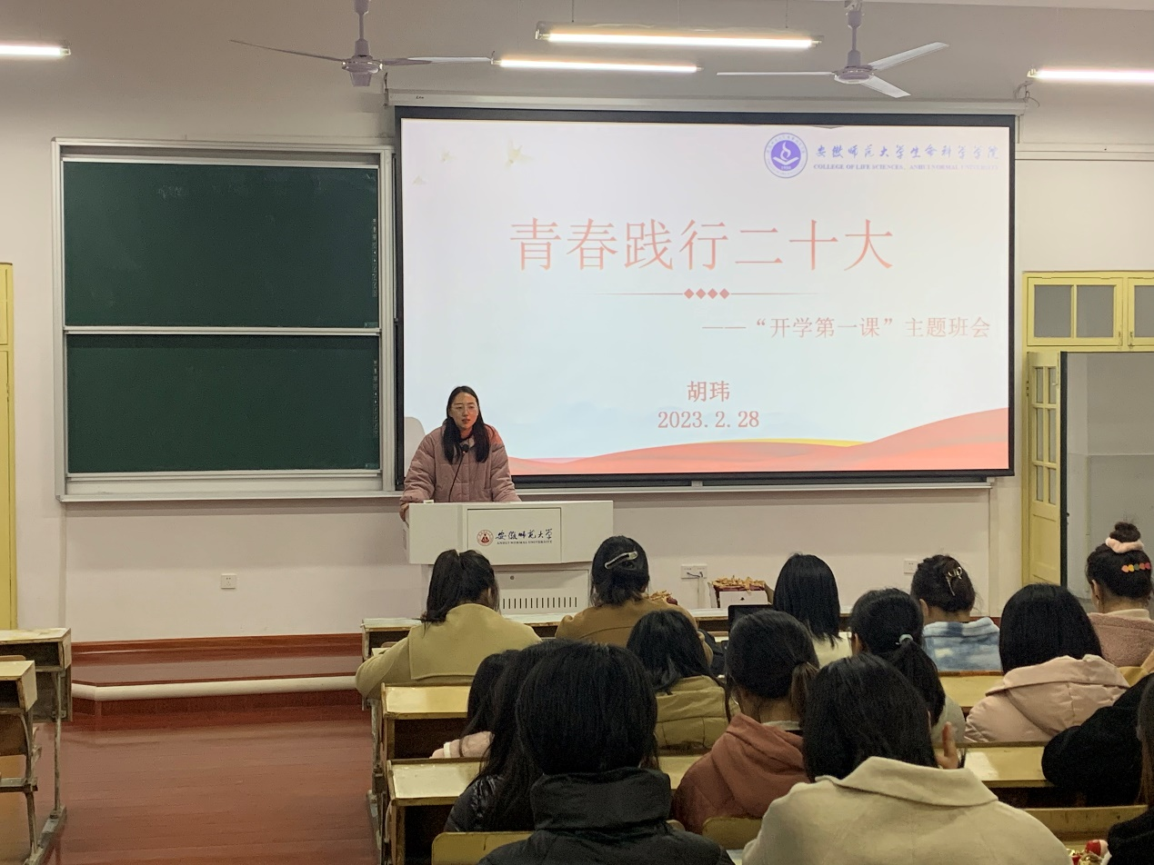 在新学期伊始,为引导青年学子坚定理想信念,走好新学期第一步,2月28日,辅导员胡玮于教学楼1401开展了“青春践行二十大”开学第一课主题班会。