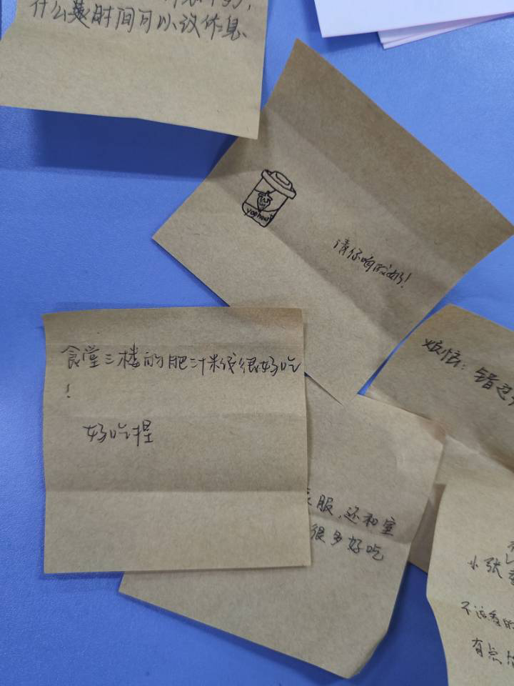 最后,到了班级特色活动。同学们将近一段时间所遇到的问题以及烦恼匿名写在了纸条上,由心理委员王逸镕收集起来并向大家分享,经过心理委员与辅导员妙趣横生的答疑解惑之后,同学们心情都有了不同程度的舒畅。