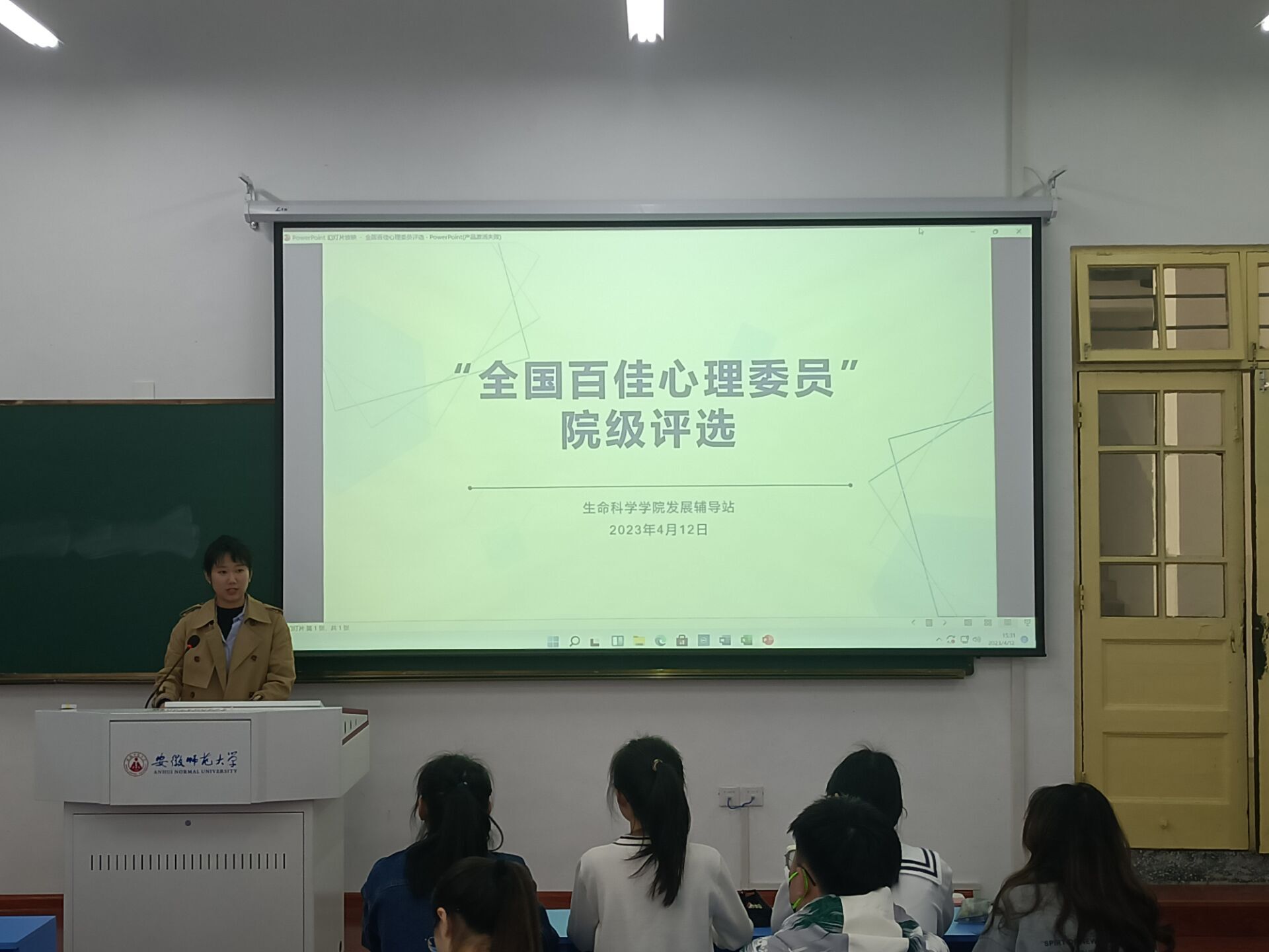 为进一步加强班级心理委员的角色意识,提升心理委员工作素养,促进我院心理委员更好地发挥自助、互助、助人的专业能力,学院心理发展辅导站于4月12日下午3点在赭山校区教学楼,进行“全国百佳心理委员”院级评选。