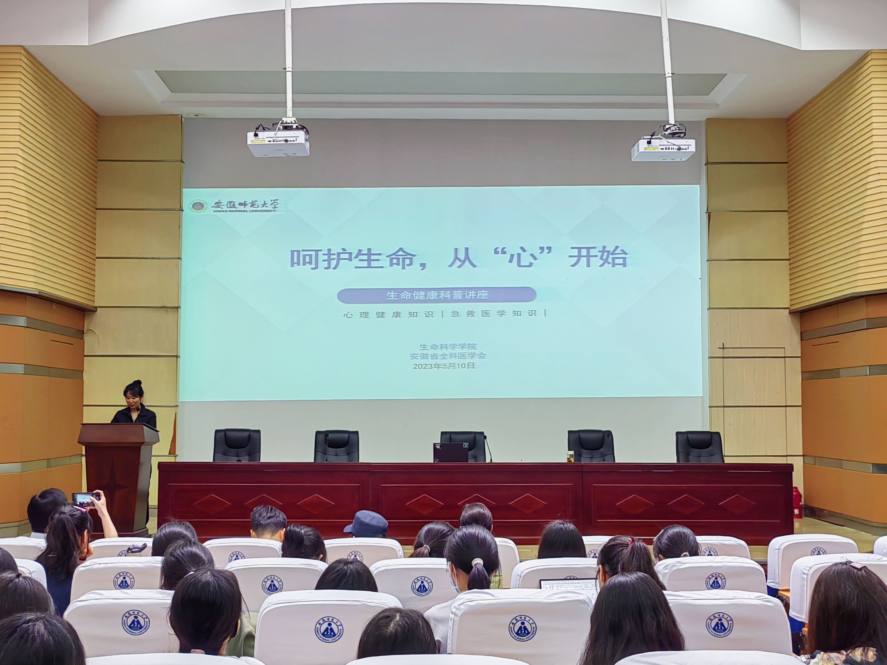 为进一步加强我校学生心理健康教育,提高心理认知水平,科普急救知识。76net必赢线路检测中心大学生发展辅导站邀请到安徽省全科医学会的专家老师,于5月10日下午在赭山校区科技礼堂主办了以“呵护生命,从‘心’开始”为题的大学生心理健康科普讲座。76net必赢线路检测中心2021级、2022级各班学生骨干参与讲座。