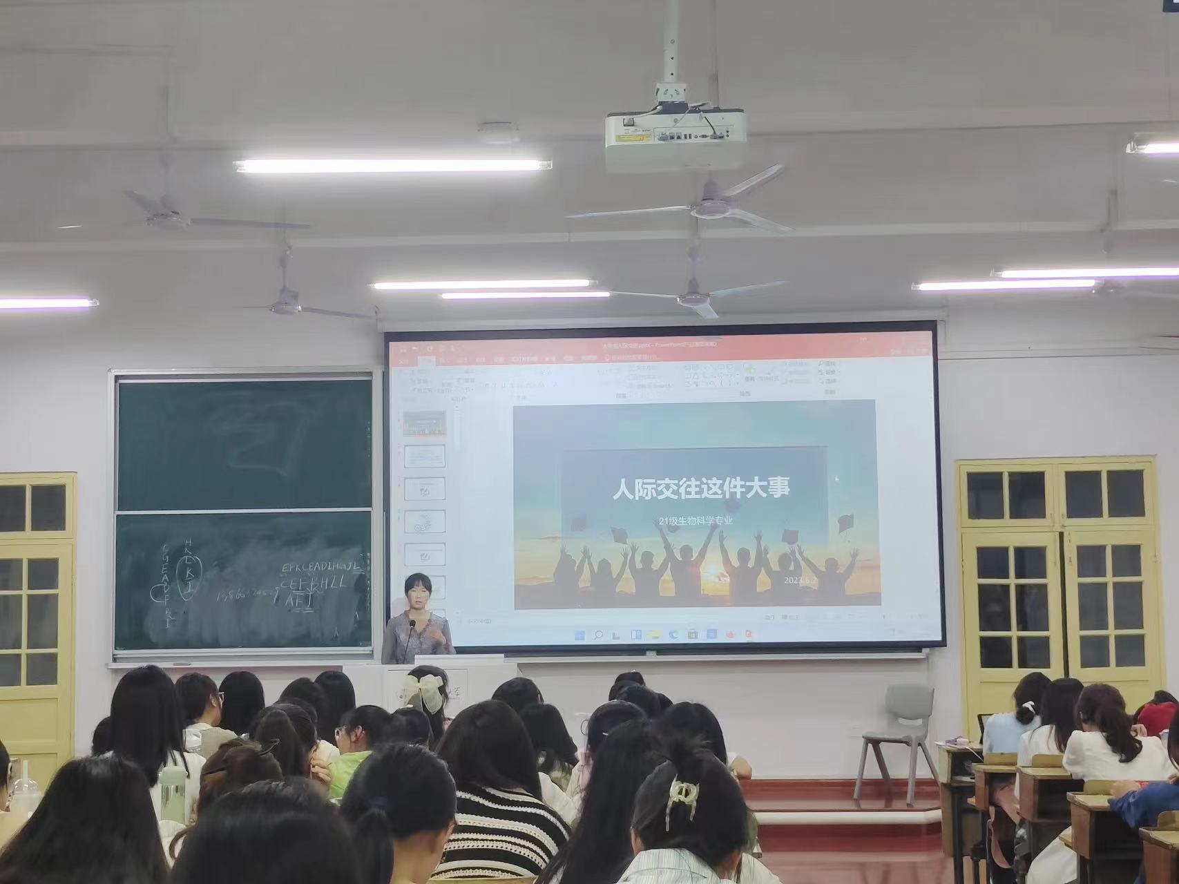 为了帮助同学们更好地理解和掌握情感交往方面的知识,2021级生物科学(师范)专业于2023年6月2日举办了一场以“人际交往这件大事”为主题的班会。会议由辅导员周文娟主持,21生科全体同学参加。