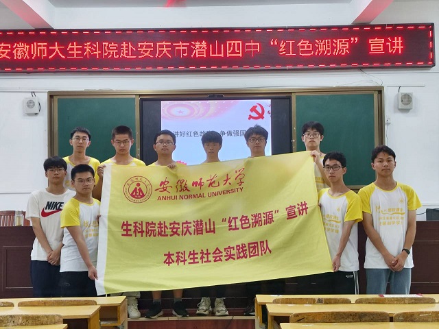 6月30日14时,生科院赴潜山“红色溯源”宣讲本科生暑期三下乡实践团队去往潜山四中进行主题为“讲好红色故事,争做强国少年”的红色主题宣讲活动。本次宣讲活动以潜山四中的学生为主要受众,介绍潜山的红色历史,旨在引导学生重视和学习潜山本地的红色文化,传承和发扬红色精神,做有理想、敢担当、能吃苦、肯奋斗的新时代好青年。