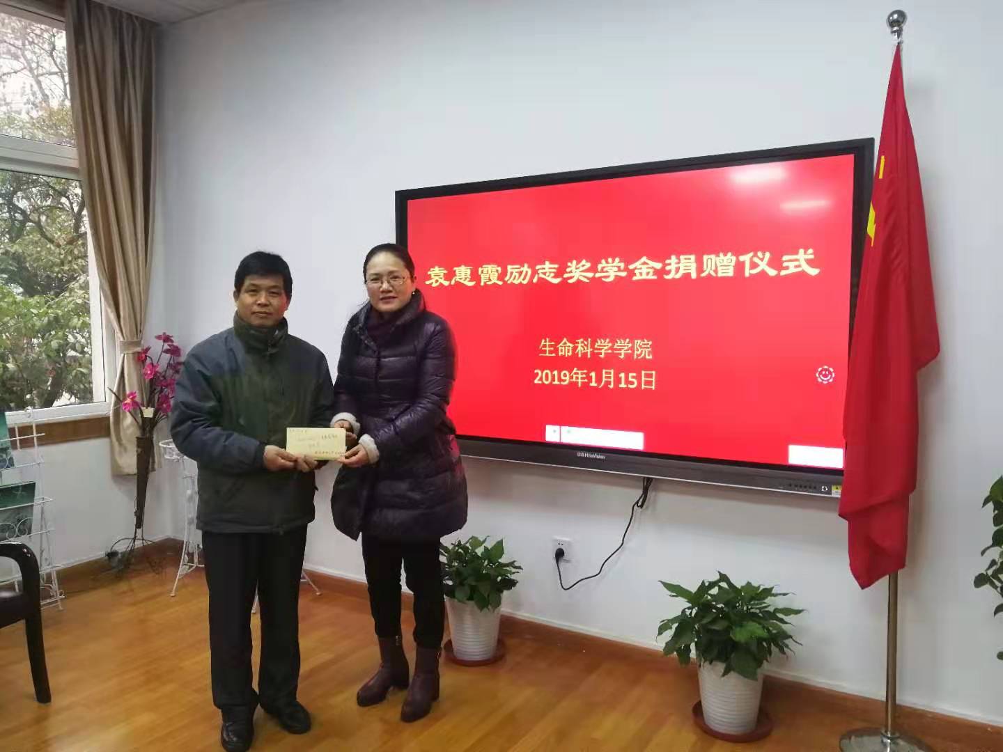 朱国萍教授向袁惠霞励志奖学金捐赠5000元