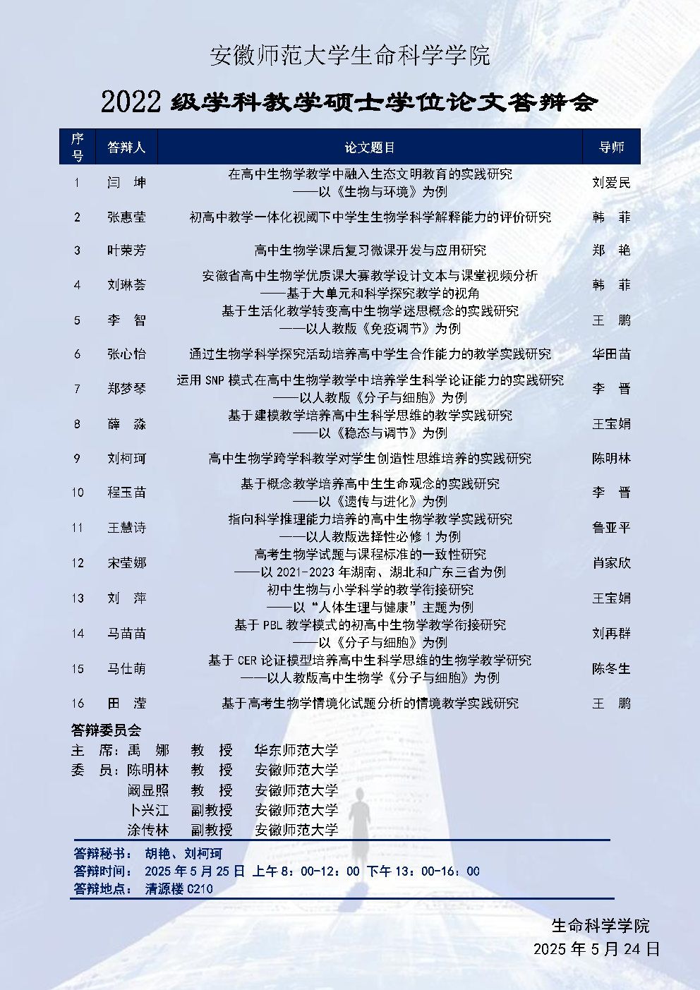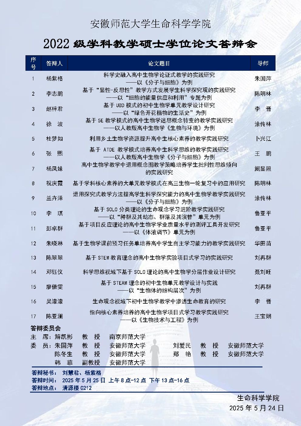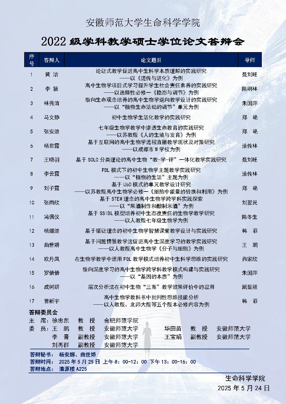 76net必赢线路检测中心2025届学科教学(生物)专业硕士学位论文答辩会