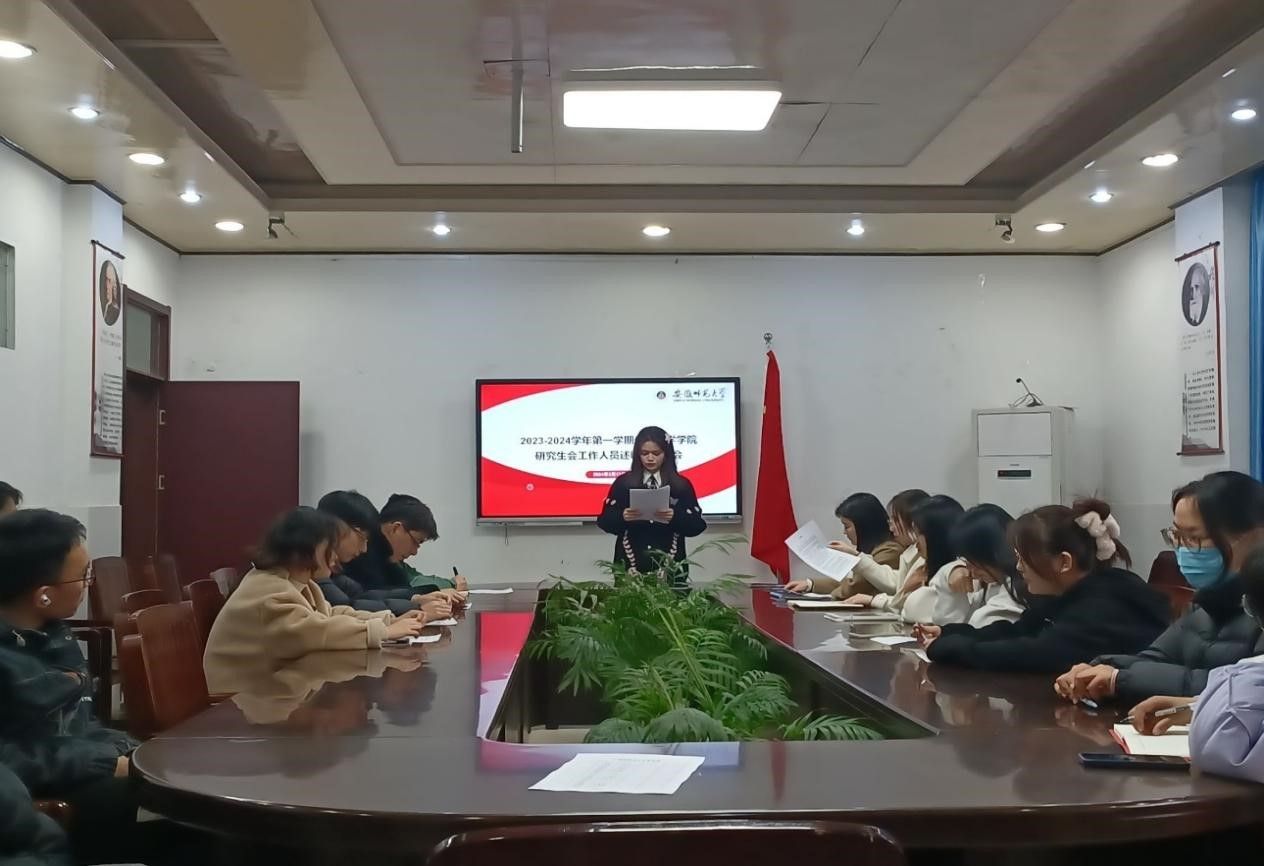 为深入贯彻习近平总书记关于青年工作的重要思想,建设高素质研究生会工作队伍。3月13日下午16时,学院于生化楼后二楼会议室召开2023-2024学年第一学期研究生会工作人员述职评议大会。院研究生会指导老师魏泽坤、校研究生会主席团成员、各班班长代表列席参会,院研究生会主席团成员朱云桢主持会议。