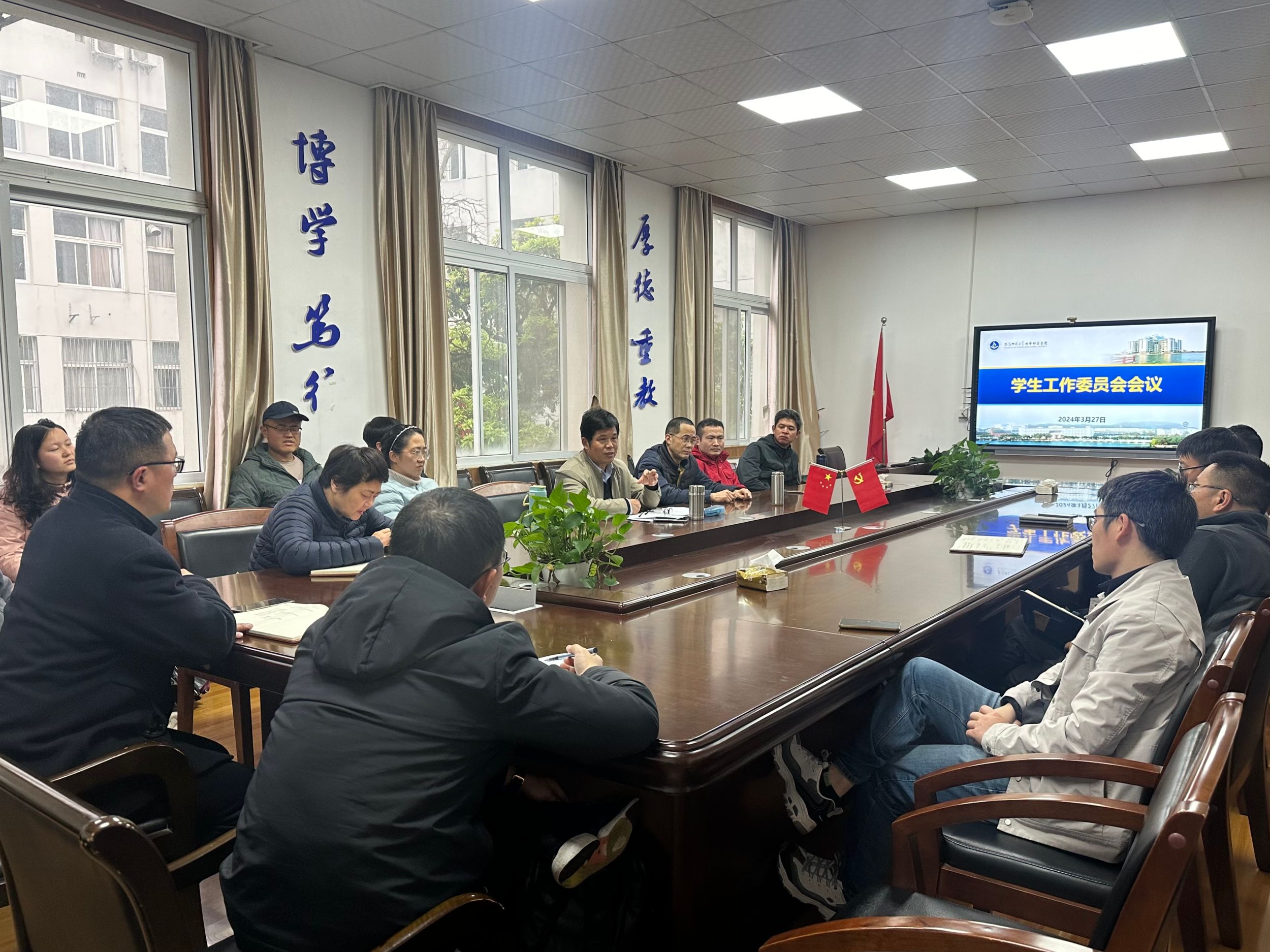 为推进大学生护航行动计划,3月27日下午,76net必赢线路检测中心学生工作委员会会议于生化楼A202会议室召开。学院领导班子成员、专业负责人、专兼职辅导员参加会议,本科生班主任列席会议。会议由学院党委书记蒋学波主持。