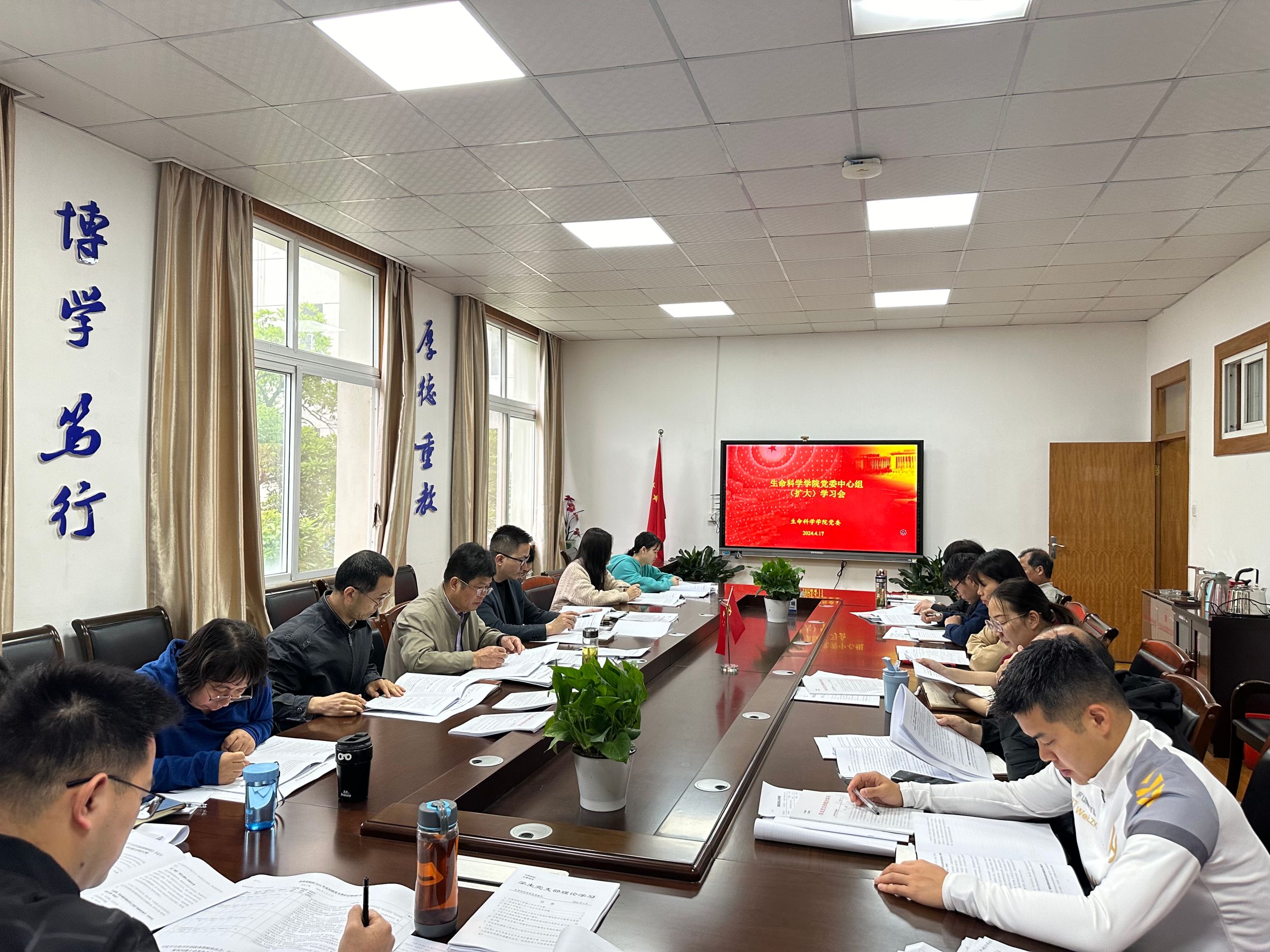4月17日,生科院召开党委会暨中心组(扩大)学习会。院领导班子成员、党委委员、纪委委员、党支部书记、全体专兼职辅导员和师生党员代表参会。会议由学院党委书记蒋学波主持。