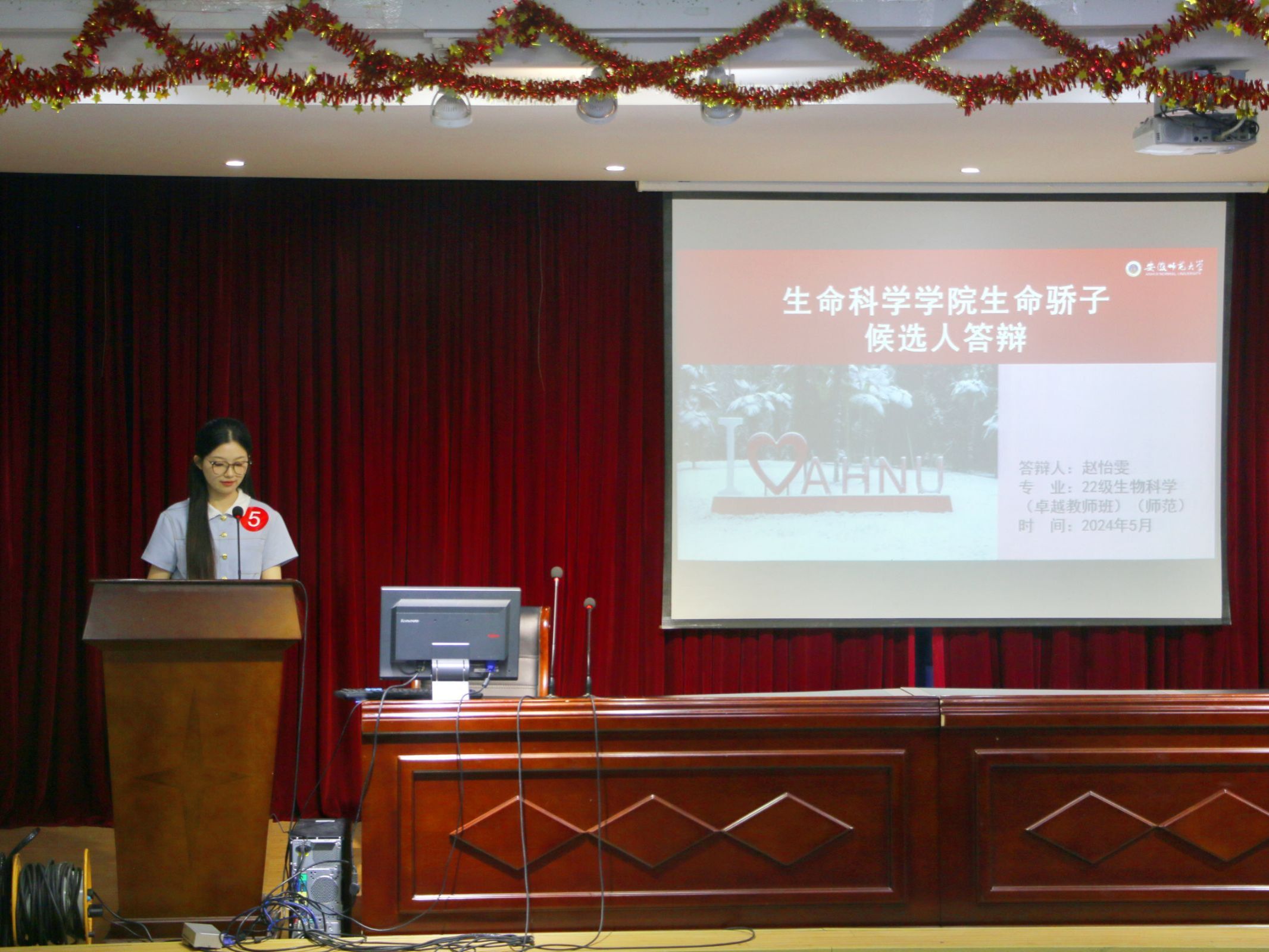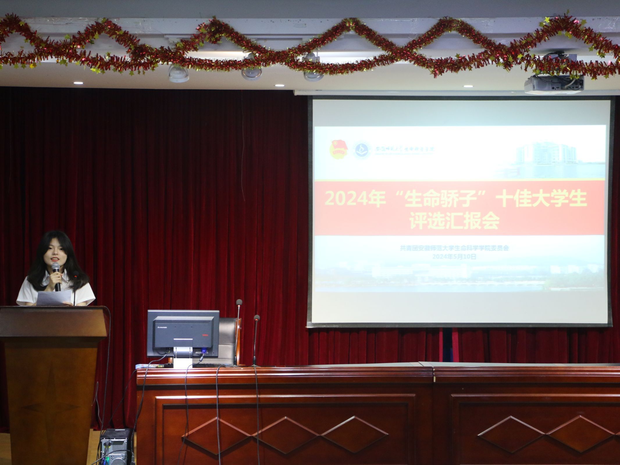 (本网讯 生科院)为在青年大学生中营造崇尚先进、学习先进的良好风气,发挥优秀学生典型的教育示范作用,引导广大学生奋发有为、全面成才,5月8日下午,76net必赢线路检测中心于图书馆报告厅举办2024年“生命骄子”十佳大学生评选汇报会。院党委副书记汪倩倩、团委书记刘梦婷、专业负责人刘爱民、韩菲、姜斌、汪昌保、辅导员胡玮、周文娟、赵航等老师出席担任本次评选会评委,各班级代表参加会议。