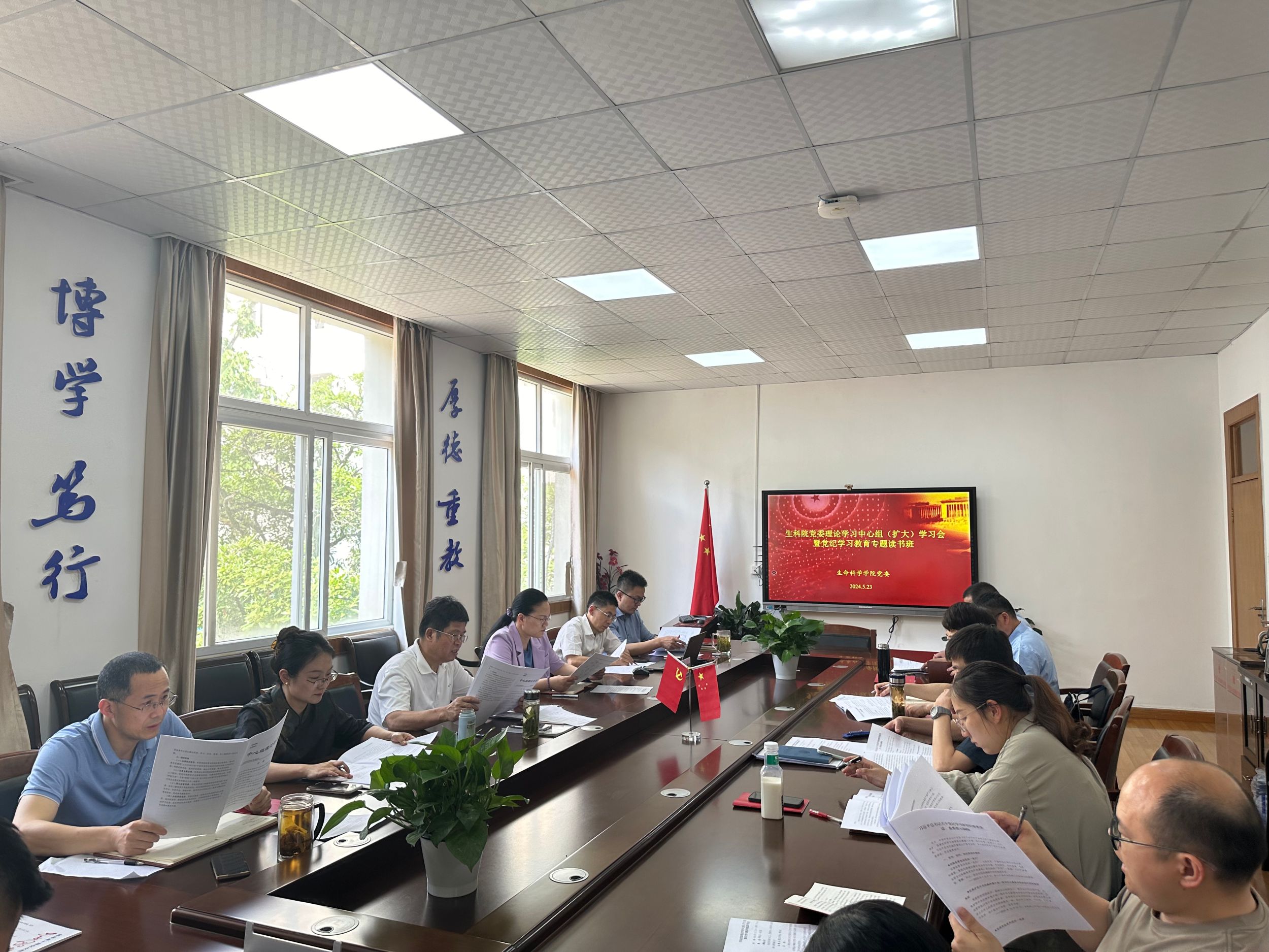 5月23日下午,生科院召开党委理论学习中心组(扩大)学习会暨党纪学习教育专题读书班。学院领导班子成员、党委委员、纪委委员、党支部书记及全体专兼职辅导员参加会议。会议由学院党委书记蒋学波主持。