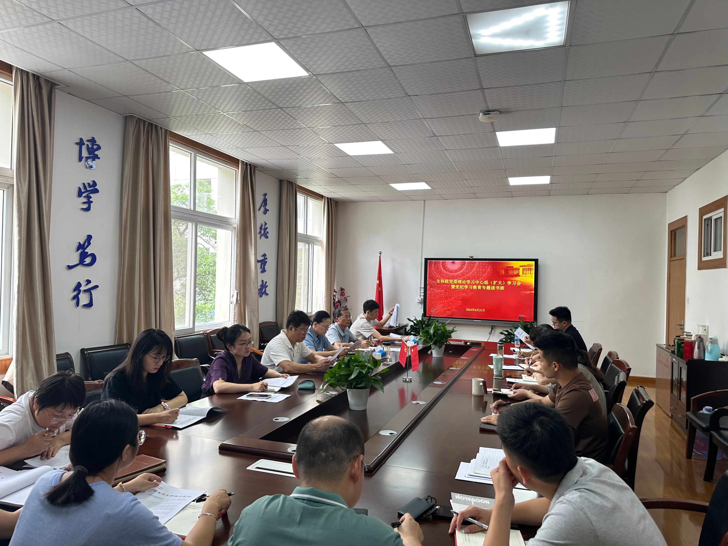 6月21日上午,生科院召开党委理论学习中心组(扩大)会暨新一期党纪学习教育专题读书班。学院党委领导班子成员、全体党支部书记及全体辅导员参会。