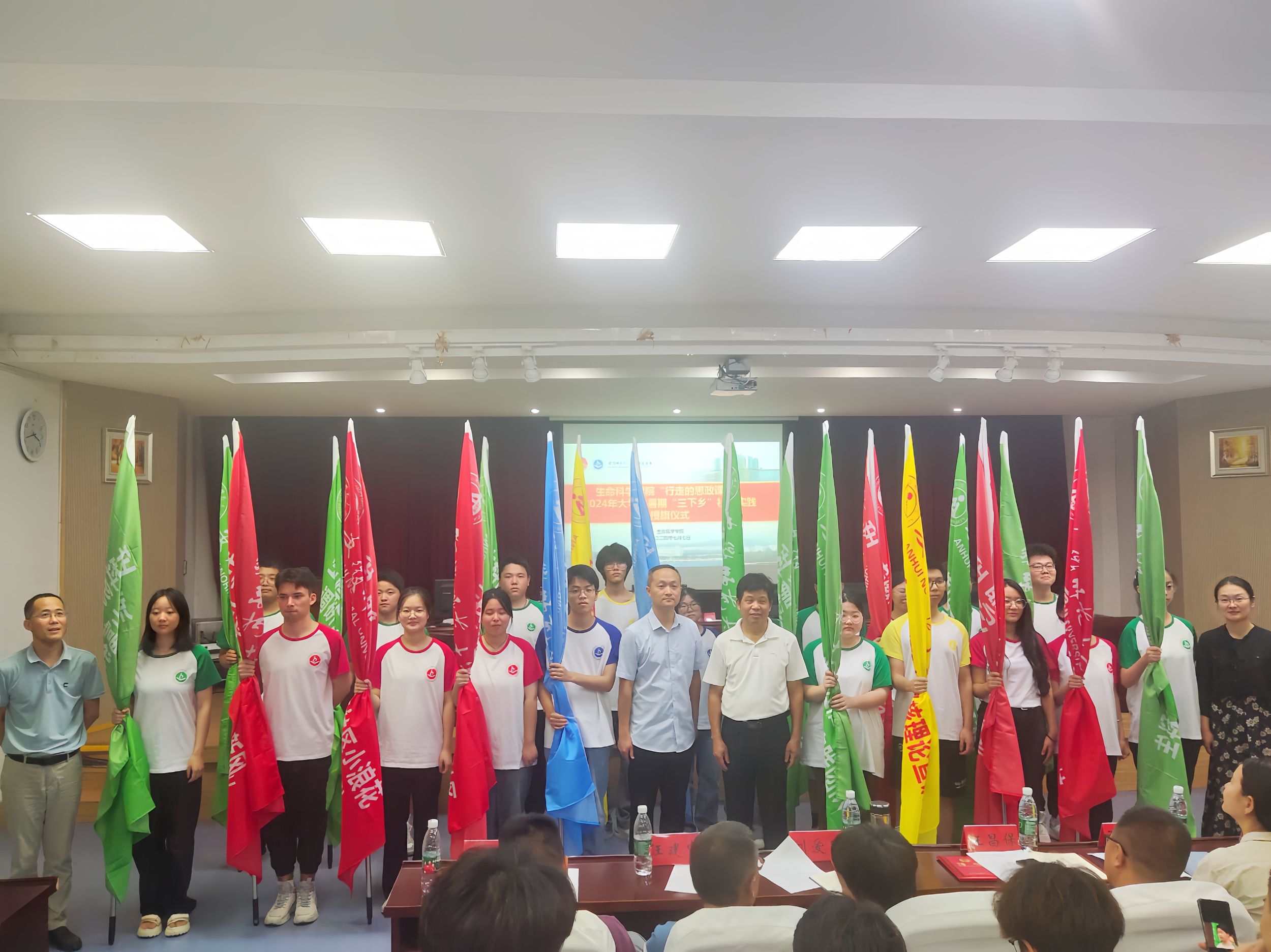 蒋学波做了动员讲话。他强调社会实践是学生了解社会、增长才干的重要载体,同时向即将奔赴各地进行社会实践的师生提出殷切期望,一是了解国情社情民情,练就过硬本领;二是学会理性思考,坚定理想信念;三是展现担当作为,擦亮青春底色,以饱满的热情、昂扬的斗志投身到暑期社会实践中去,将“三下乡”活动真正落到实处,发挥青年青春力量,为美丽中国建设创新创造无限可能。