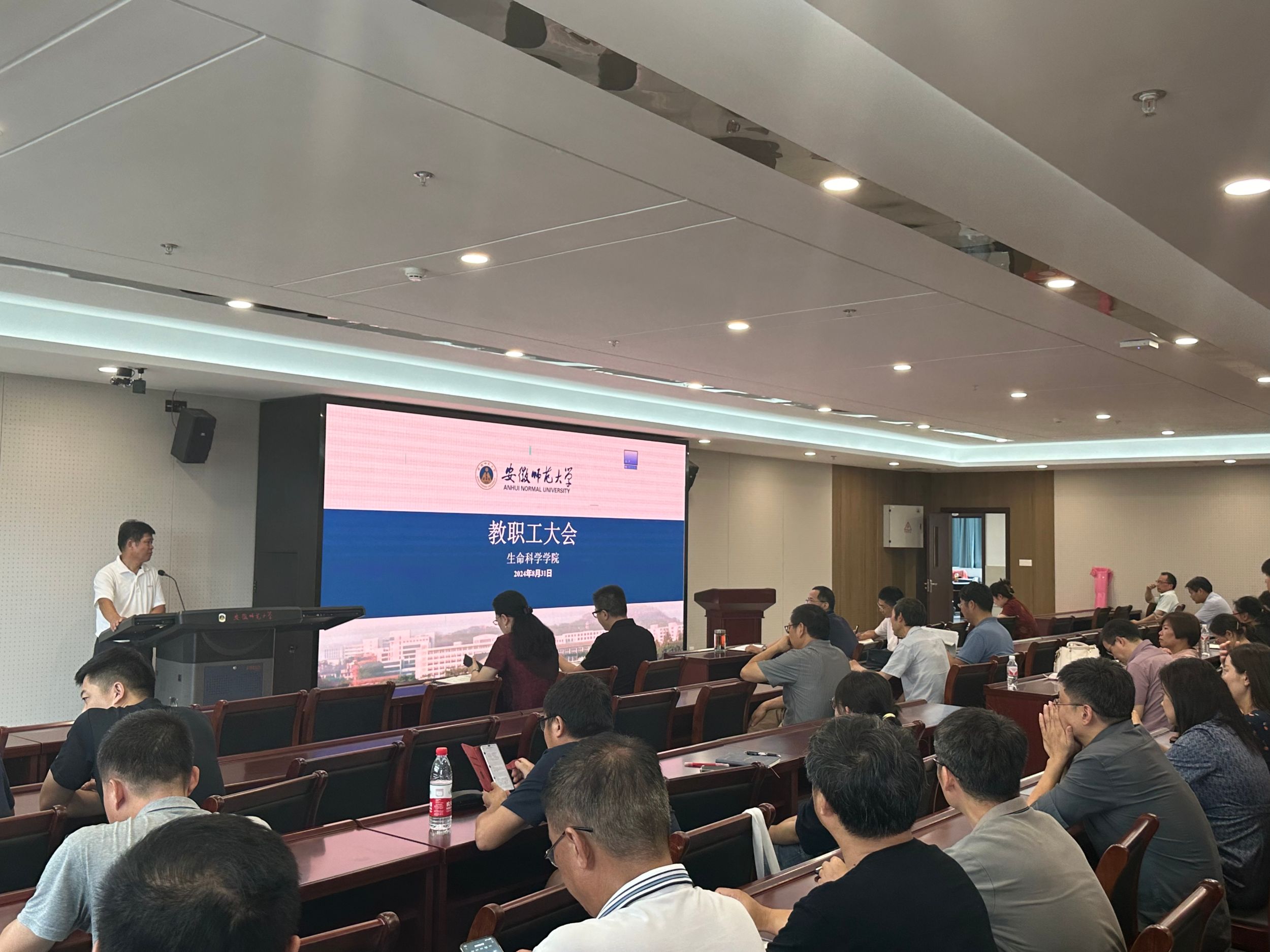 8月31日,生科院在清源楼A座楼虚拟仿真教学中心召开新学期教职工大会,学院班子成员、全体教职工参会。会议由学院党委书记蒋学波主持。