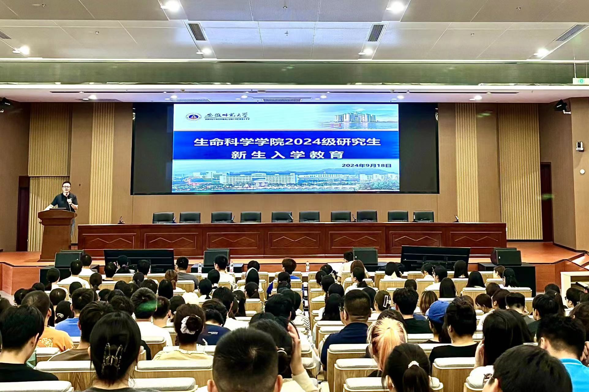 为引导2024级研究生新生充分了解生科特色,树立专业自信,明确科研规划和未来职业发展方向,9月18日下午,76net必赢线路检测中心于文典楼西裙三楼报告厅召开2024级研究生入学教育大会。生科院党委书记蒋学波、院长朱国萍、副院长王立龙、2024级辅导员柴文杰、2022级辅导员魏泽坤以及学院2024级全体研究生出席本次大会,大会由副院长王鹏主持。