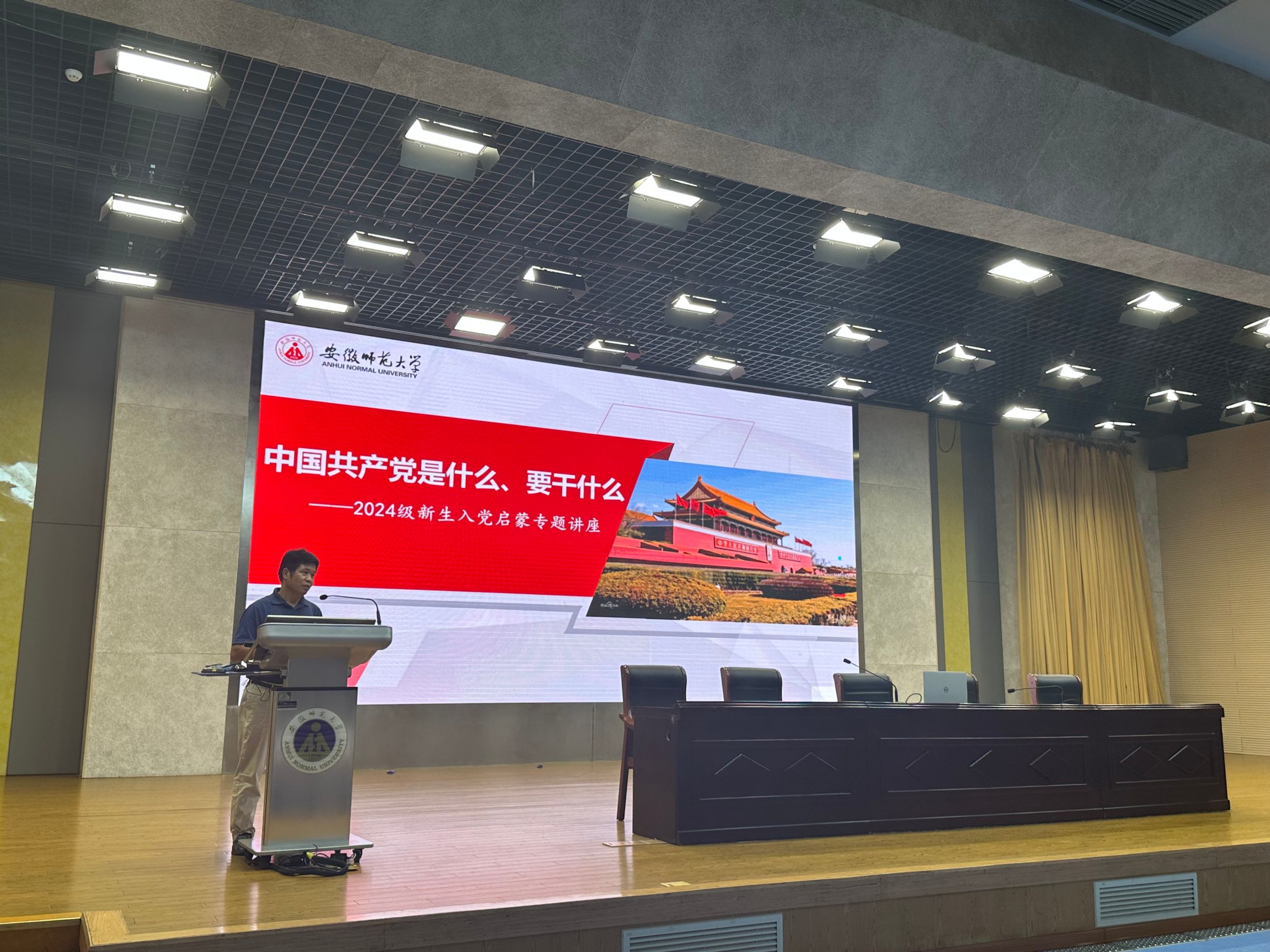 学院党委书记蒋学波为全体2024级新生开展入党启蒙教育。他以“中国共产党是什么、要干什么”为主题,从中国共产党是什么、中国共产党要干什么、当代青年应该怎么做、如何申请加入中国共产党这四个方面展开,指出中国共产党是中国工人阶级的先锋队,同时是中国人民和中华民族的先锋队,是全心全意为人民服务的政党,是具有坚定理想信念的政党。最后,从申请条件及对象、入党的基本程序等介绍如何加入中国共产党,希望同学们在政治上做表率、在学习上做表率、在服务上做表率,并祝愿大家早日成为一名光荣的中国共产党党员。