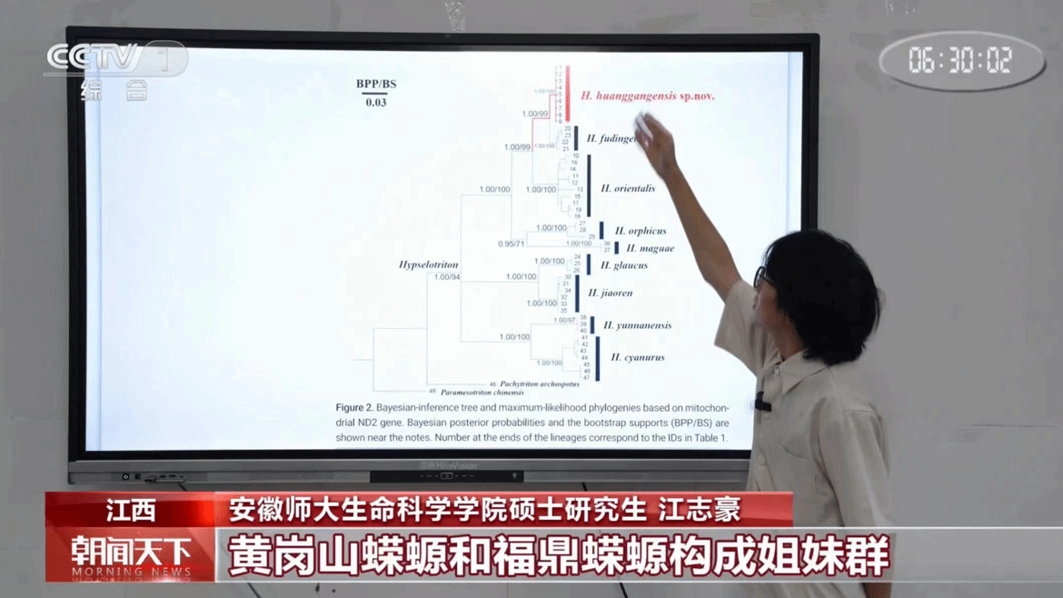 脊椎动物新物种的发现实属难得。2024年10月7日,中央电视台《朝闻天下》栏目专题报道了“黄岗山蝾螈”新种的发现。后续,央视《今日环球》《江西新闻联播》《中国科学报》《科技日报》《大江资讯》等数十家媒体转载了该新闻。