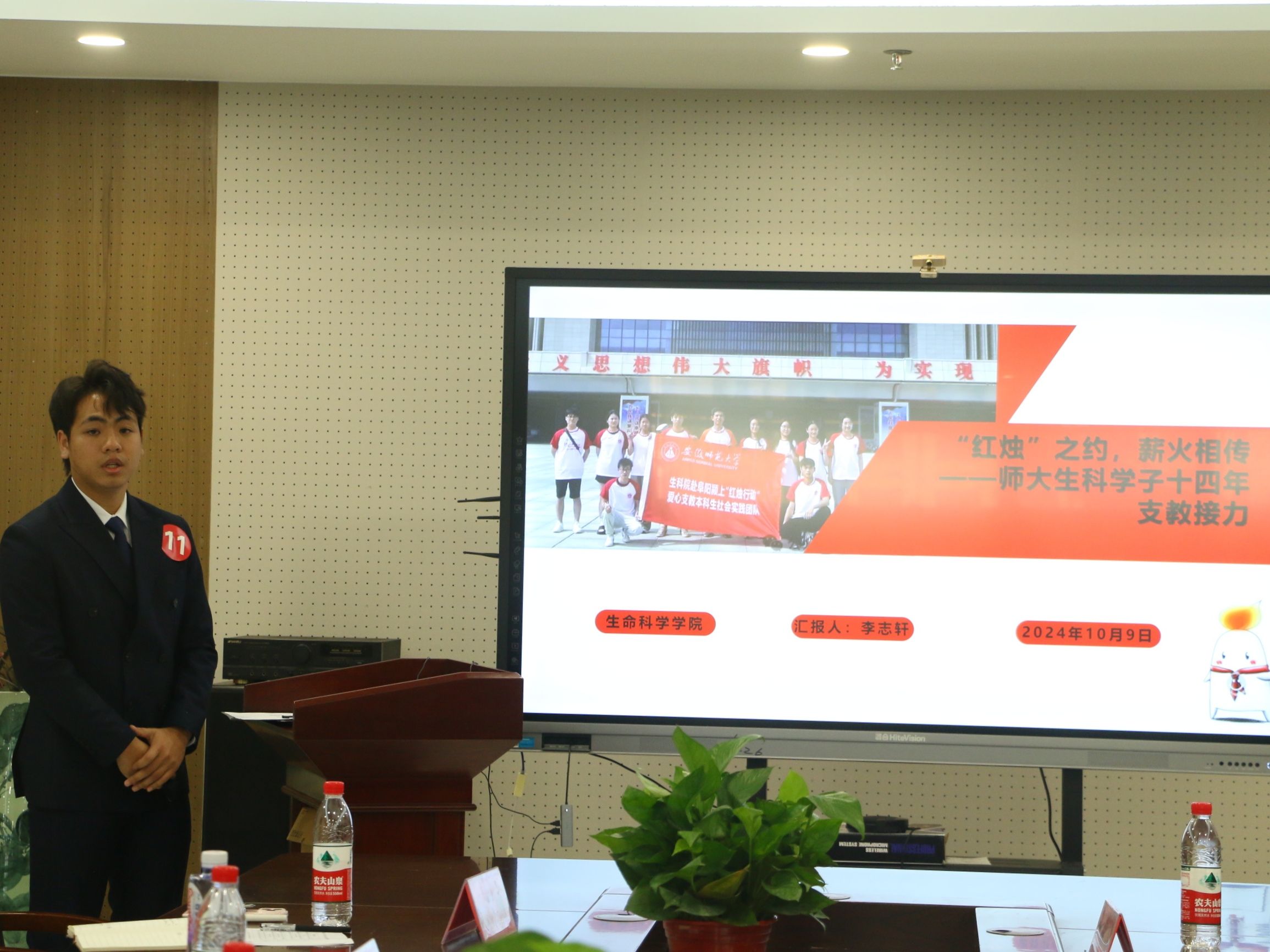 答辩会上,共有来自校院两级不同年级和专业的16组实践团队依次汇报,通过PPT、视频等形式,生动展示了各自实践项目的背景、方法、过程、成果和反思。这些项目涵盖了生物科学师范生研究、生态环境保护、爱心支教、科普推广等多个领域,充分展示了生科学子的广泛兴趣和扎实功底。针对暑期社会实践中出现的问题评委老师们提出建议,同时他们还强调要不断改进创新调研方法,提高调研结果记录的准确性。对于“老带新”的团队,评委们表示十分赞赏,为未来的暑期社会实践团队做榜样。