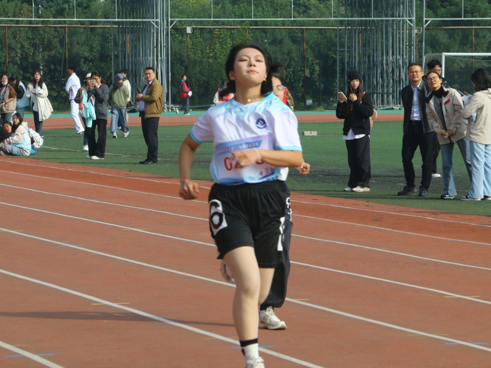图为女子100米预赛选手李可馨100米奔跑画面