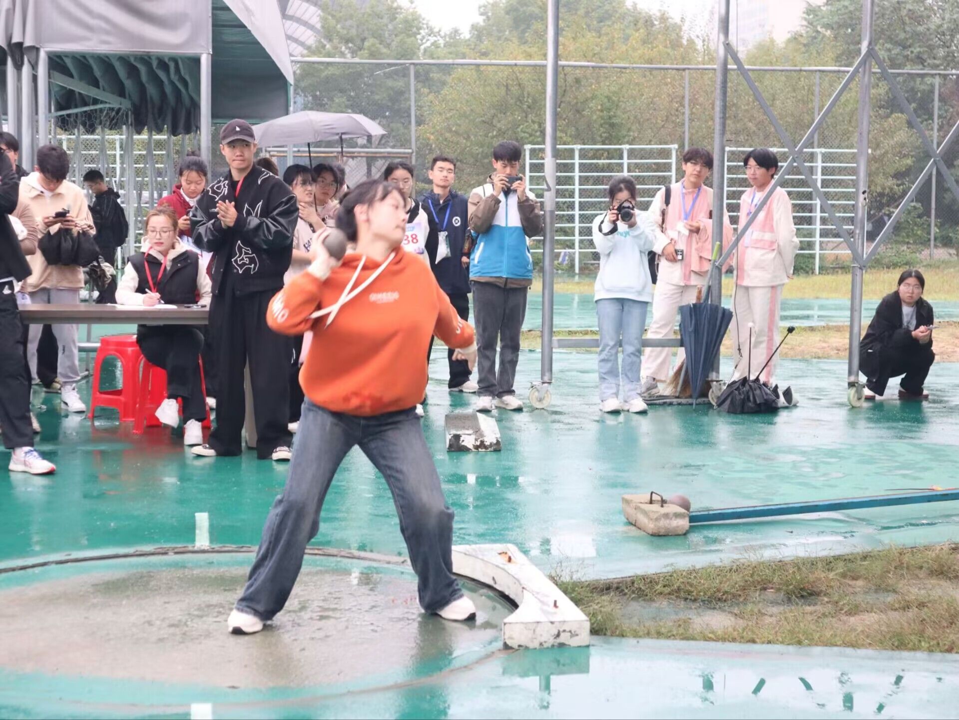 图为女子甲组铅球项目罗薇同学掷球瞬间
