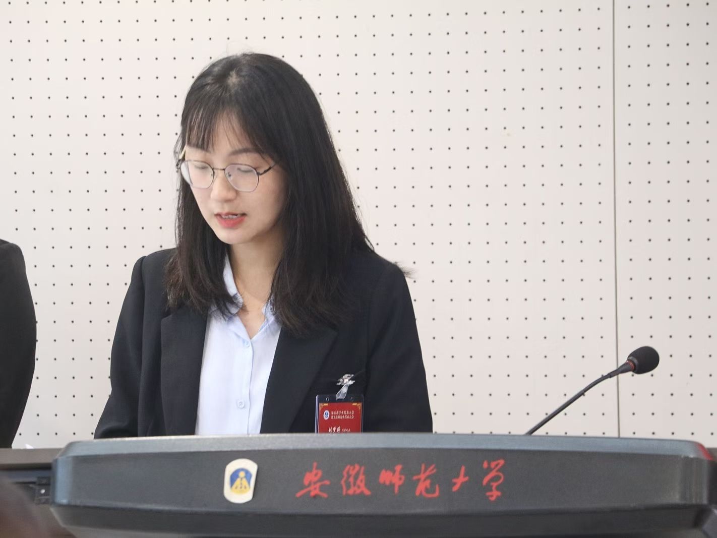 大会第三阶段暨闭幕式,刘梦婷宣读学院学生会和研究生会工作报告评议,柴文杰宣读学院推荐参加第十七届校学代会和第六次研代会代表名单、学院学生会和研究生会主席团名单、学院学生委员会和研究生委员会成员名单。