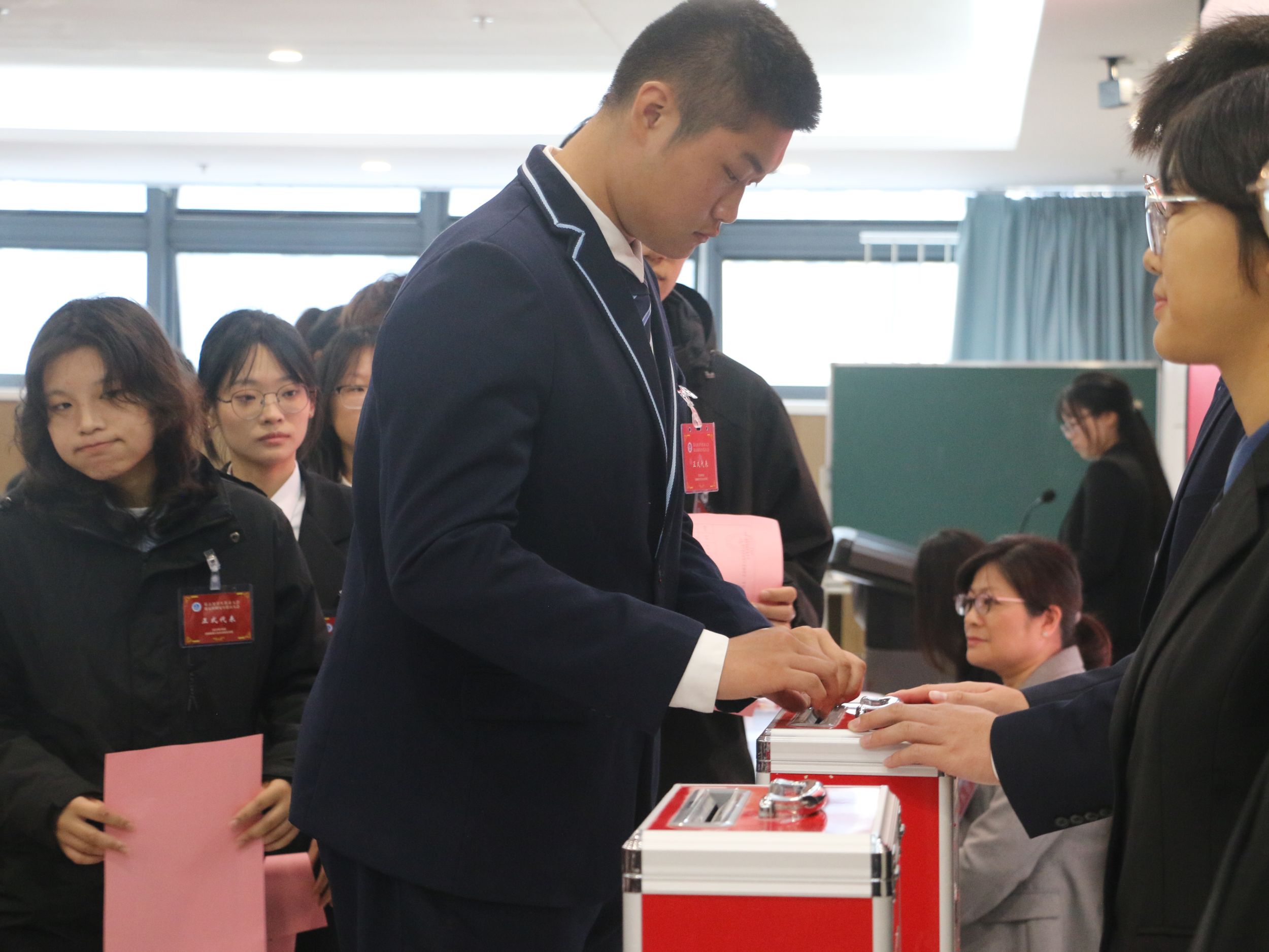 大会第二阶段,大会依次审议通过了76net必赢线路检测中心出席校学代会(研代会)代表选举办法、学院学生会(研究生会)主席团、委员会选举办法,审议通过了本次院学研代会总监票人、监票人、总计票人、计票人名单,并选举学院学生会(研究生会)主席团和院委员会委员。