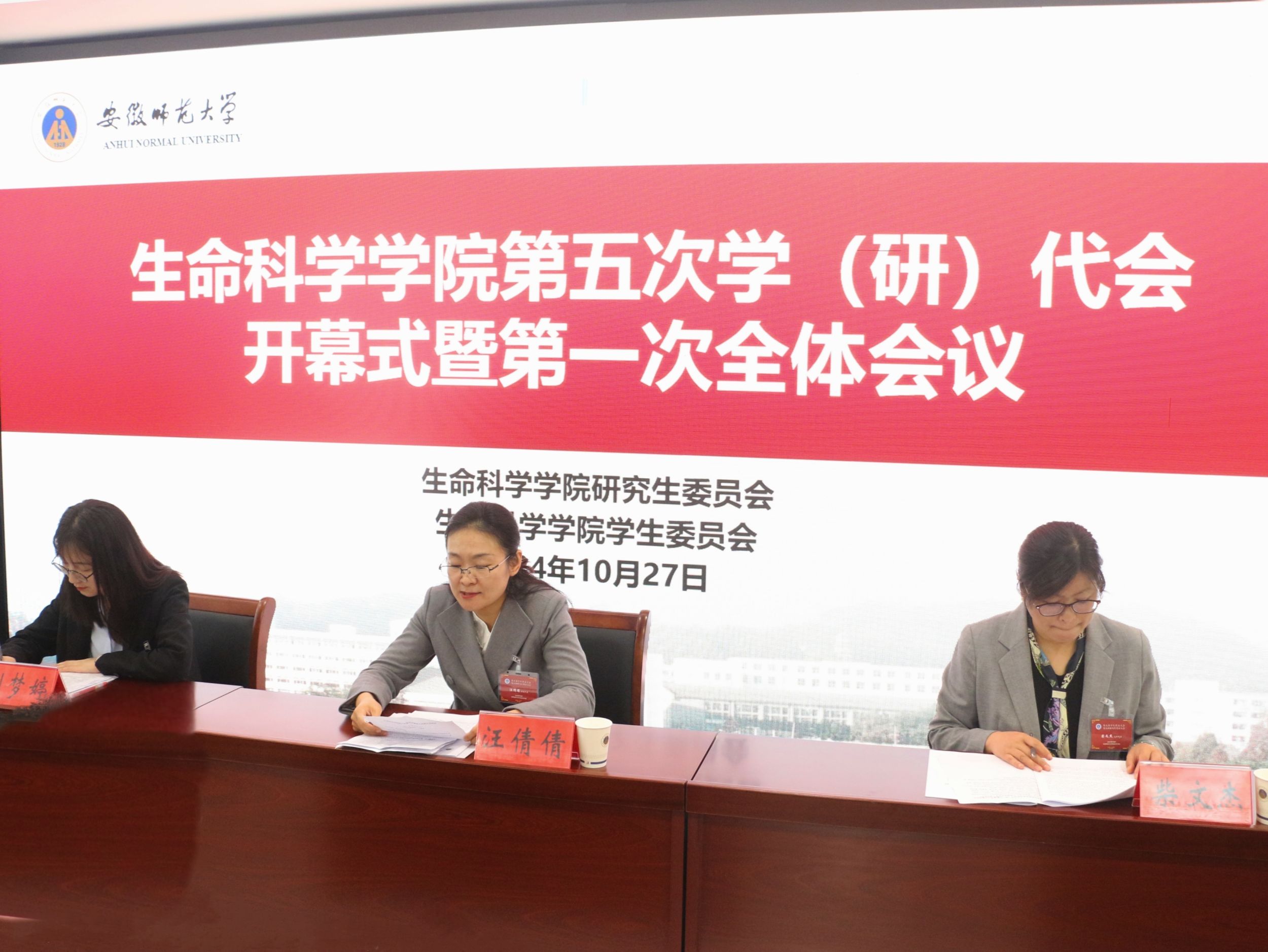 本网讯(生科院 黄梓烨)10月27日上午9时,76net必赢线路检测中心第五次学生代表大会暨第五次研究生代表大会在清源楼A227会议室正式召开。学院党委副书记汪倩倩、团委书记刘梦婷、研究生辅导员柴文杰出席会议,会议由王杰敏、倪玉婷主持。