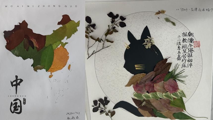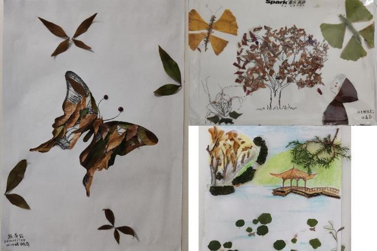 本次活动主题为“以叶作画,共绘花津”。同学们利用课余时间在校园内收集各形各色的树叶,充分发挥想象力和创造力,借助胶水、剪刀等辅助工具,把花津校区的景色剪贴出来。此次活动共收集作品20幅,有花津湖中游弋的天鹅,有道路两旁矗立的银杏,有庄严气派的敬文图书馆,有新落成的清源楼。发展辅导站对同学们的作品进行评奖,共评出一等奖2副,二等奖2副,三等奖3副。