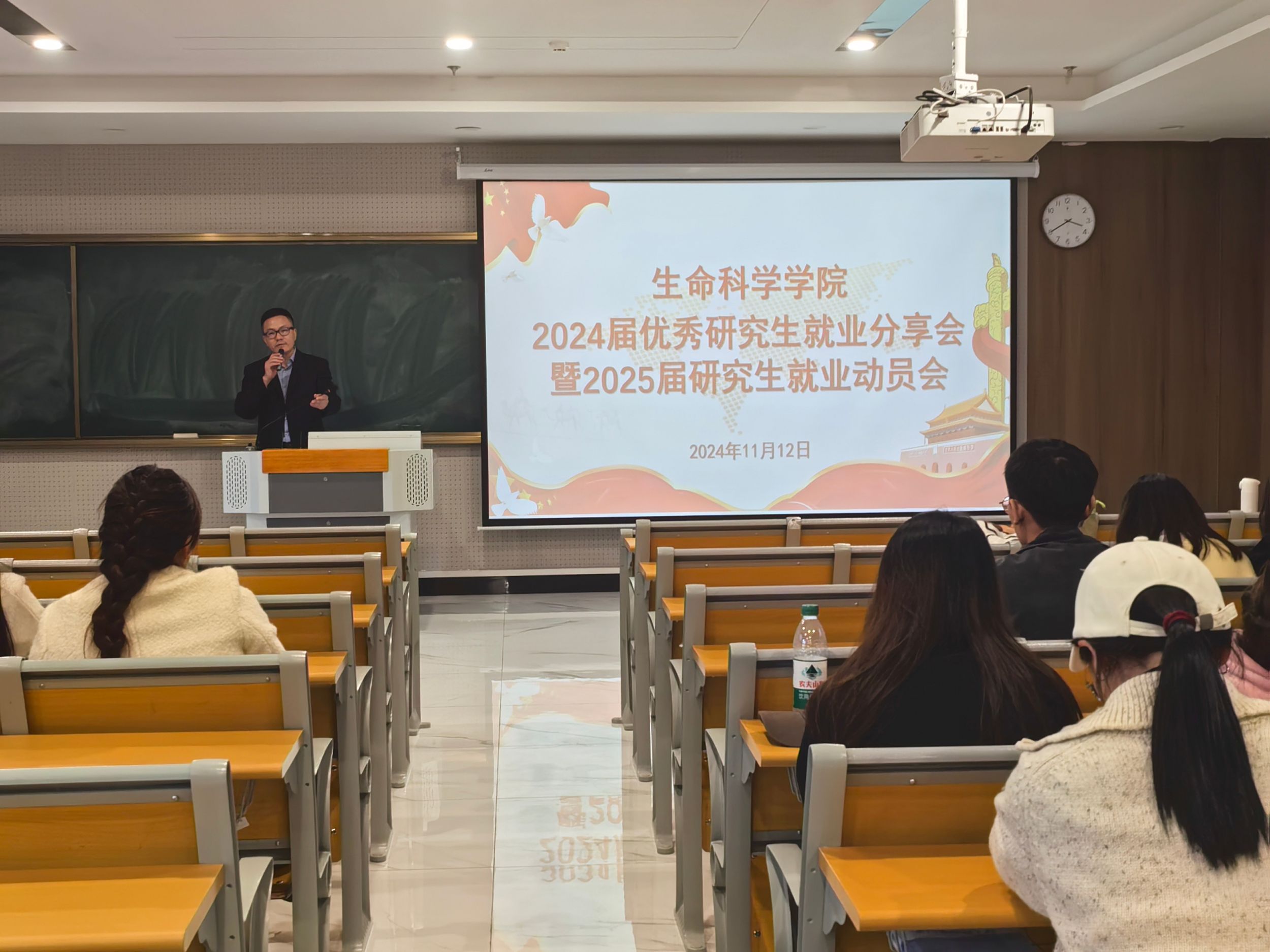 2024届三位优秀毕业生代表分享了就业经验。叶元新分享了申请博士的经验,鼓励大家勇于尝试。周普庆分享了毕业准备、求职规划、辅导员备考经历与面试经验,强调要根据自身实际慎重考虑未来就业方向。丁晨一方面建议同学们提升自身硬件竞争实力,另一方面建议广投简历,及时抓住就业机会,同时要平衡毕业压力和就业压力,放宽心态。