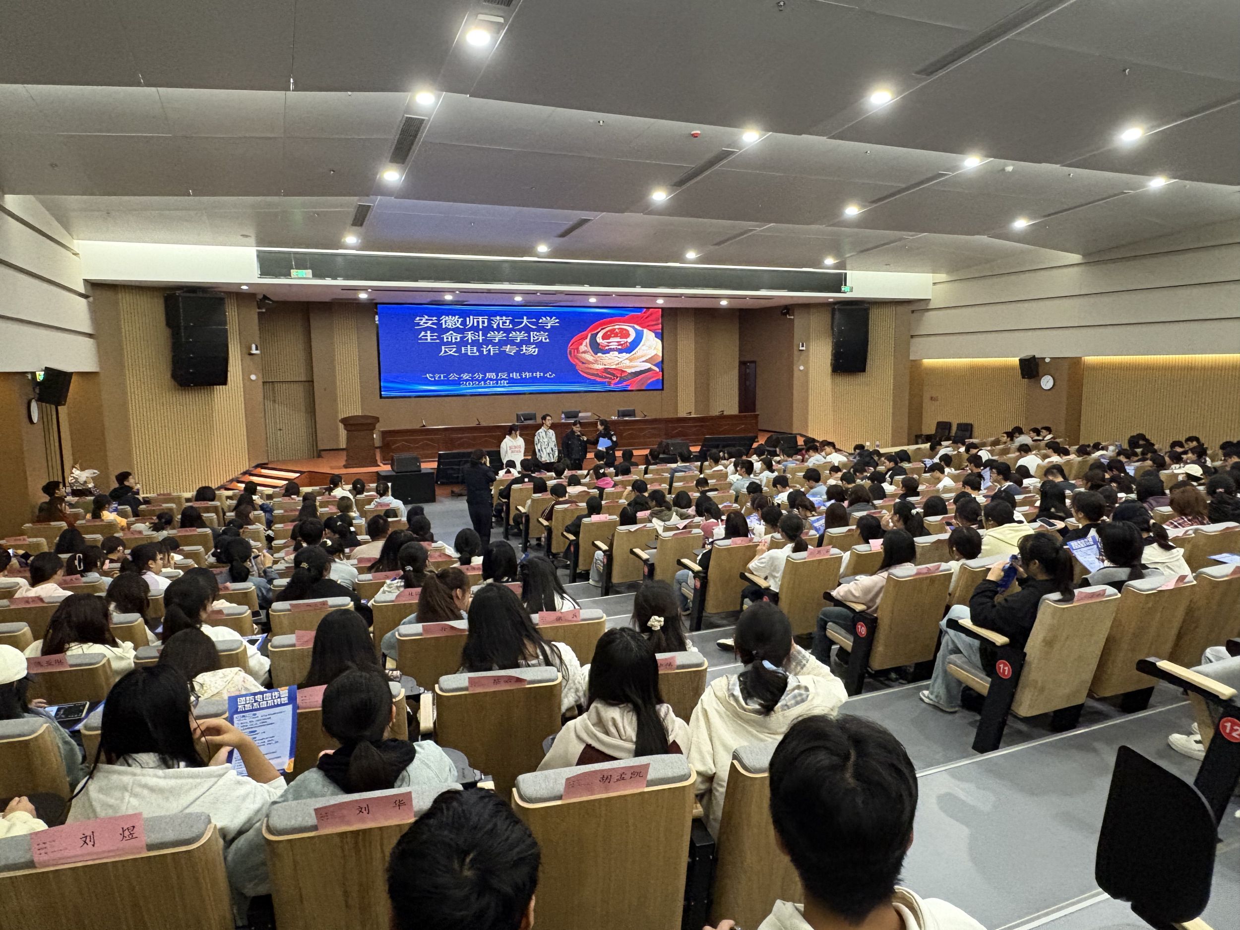本网讯(76net必赢线路检测中心团委)11月16日,在文典楼西侧裙楼报告厅,76net必赢线路检测中心团委邀请了芜湖市公安局弋江公安分局反电诈中心主任王薇警官为2024级学生作反电信诈骗专场讲座。讲座由辅导员王志老师主持。