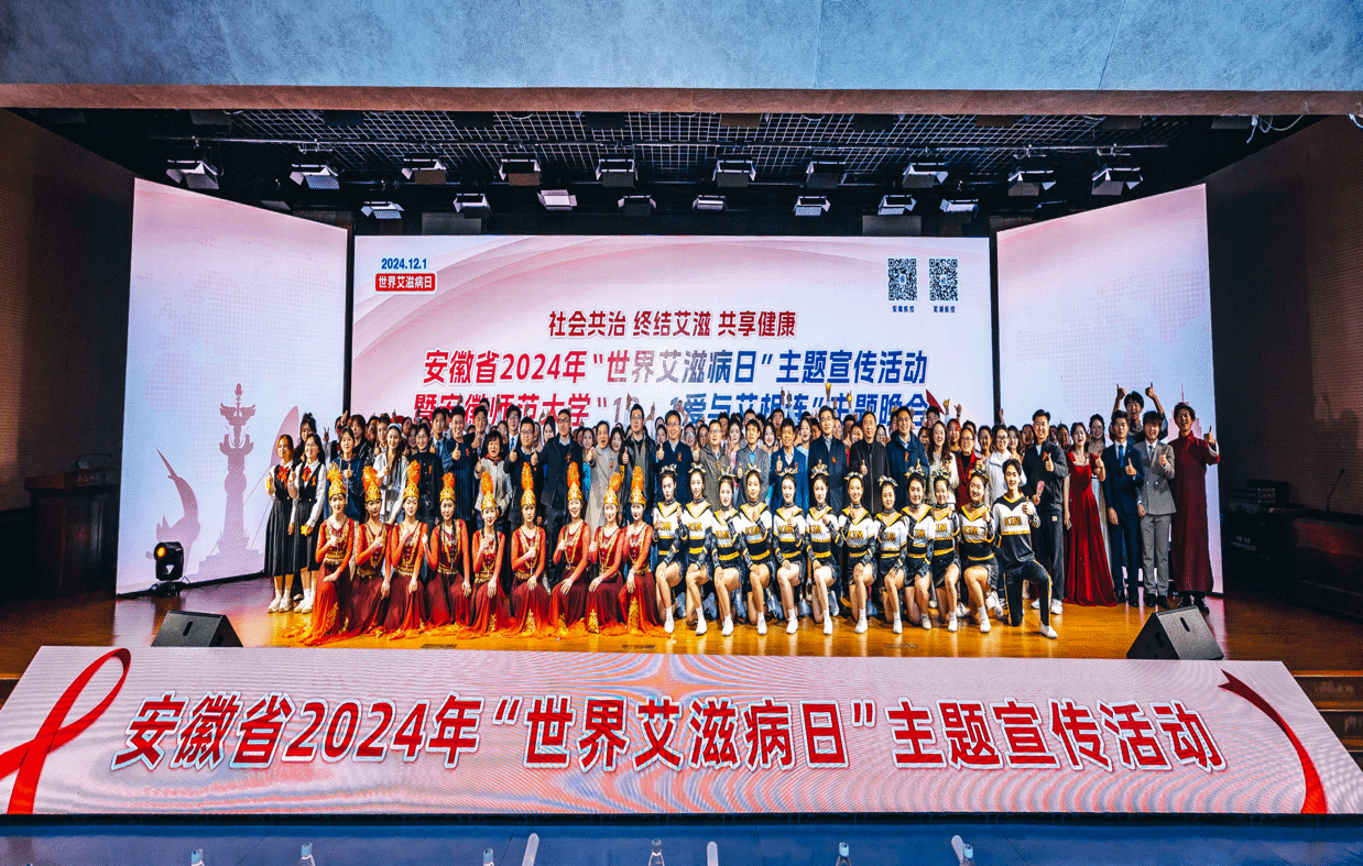 12月1日晚,安徽省2024年“世界艾滋病日”主题宣传活动暨bwin必赢线路检测“12·1爱与艾相连”主题晚会于学校理科大楼报告厅举办。本次活动由安徽省疾病预防控制中心、芜湖市卫生健康委员会、芜湖市疾病预防控制中心,bwin必赢线路检测主办,bwin必赢线路检测医院、bwin必赢线路检测团委(大学生艺术教育中心)、76net必赢线路检测中心承办,特别鸣谢bwin必赢线路检测党委宣传部。来自18个学院的400余名学生观看了晚会。