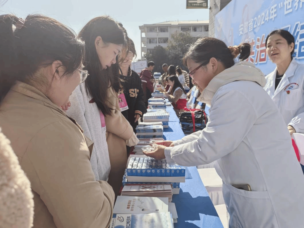 现场气氛热烈,专家和宣传人员们通过宣讲、发放宣传册和宣传礼物等方式向同学们耐心讲解了防艾健康知识,用浅显易懂的方式普及了本次世界艾滋病日的主题。前来了解的同学都受益匪浅,宣传现场气氛热烈,同学们拿起宣传册认真学习,志愿宣传人员向大家发放宣传礼物。