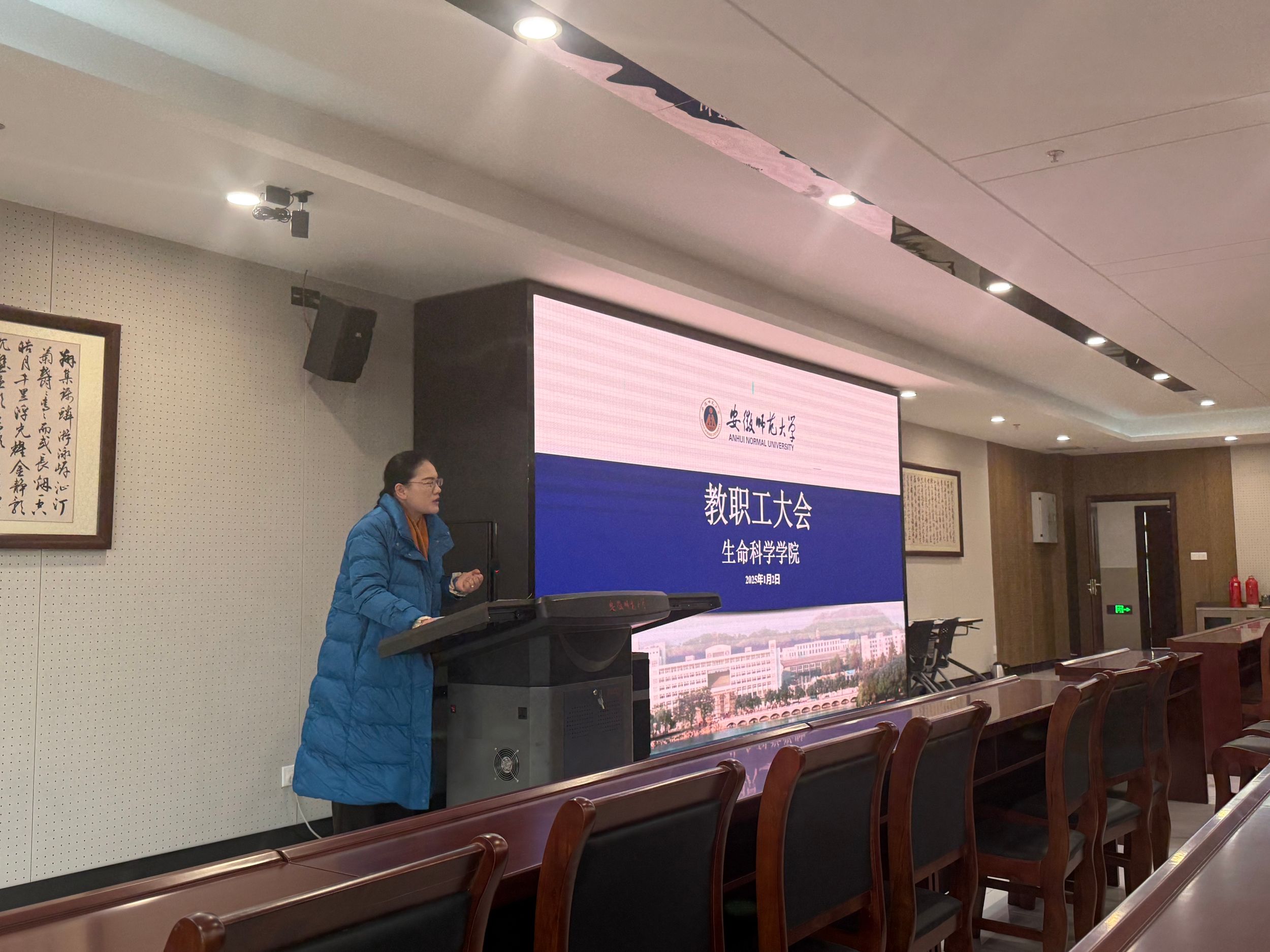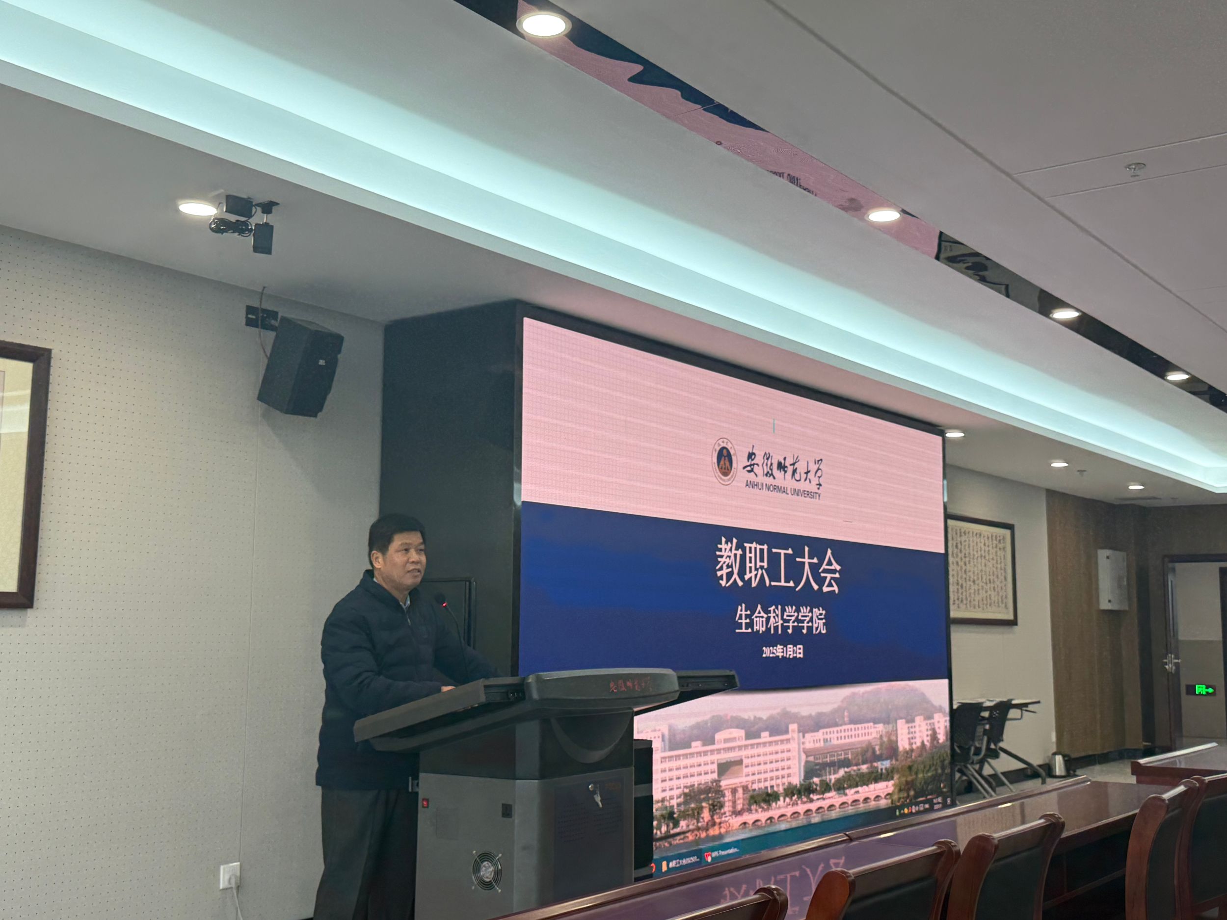 1月2日,生科院在清源楼A227会议室召开教职工大会,学院班子成员、全体教职工参会。会议由学院党委书记蒋学波主持。
