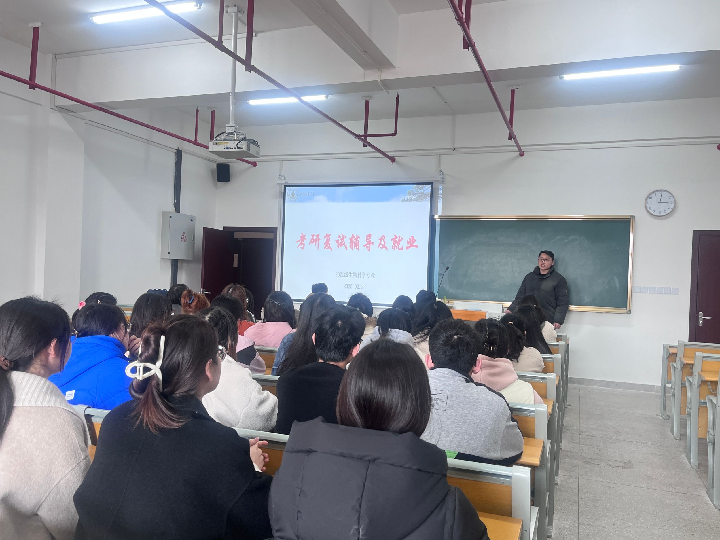 2月28日下午,在清源楼c310教室,2021级生物科学专业召开考研调剂指导会。生物科学专业负责人韩菲和生物科学卓越教师班专业姜斌出席并担任主讲人, 2021级生物科学专业辅导员周文娟主持会议。