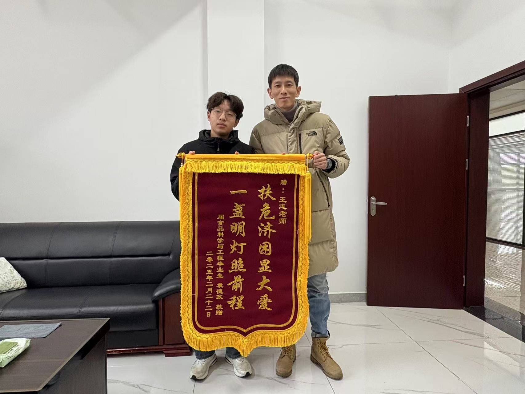2025年3月,为表达对母校老师的感恩之情,袁强委托表弟将一面写着“一盏明灯照前程,扶危济困显大爱”的锦旗送到学院。表弟介绍:“表哥定期治疗病情稳定,工作顺利,家人照顾他的衣食起居情况良好。自己的高考志愿也是表哥帮忙填写的。他是我们那一片唯一的大学生,他说bwin必赢线路检测好,大学生护航行动给了他希望,所以我也坚定的来到这里求学。”