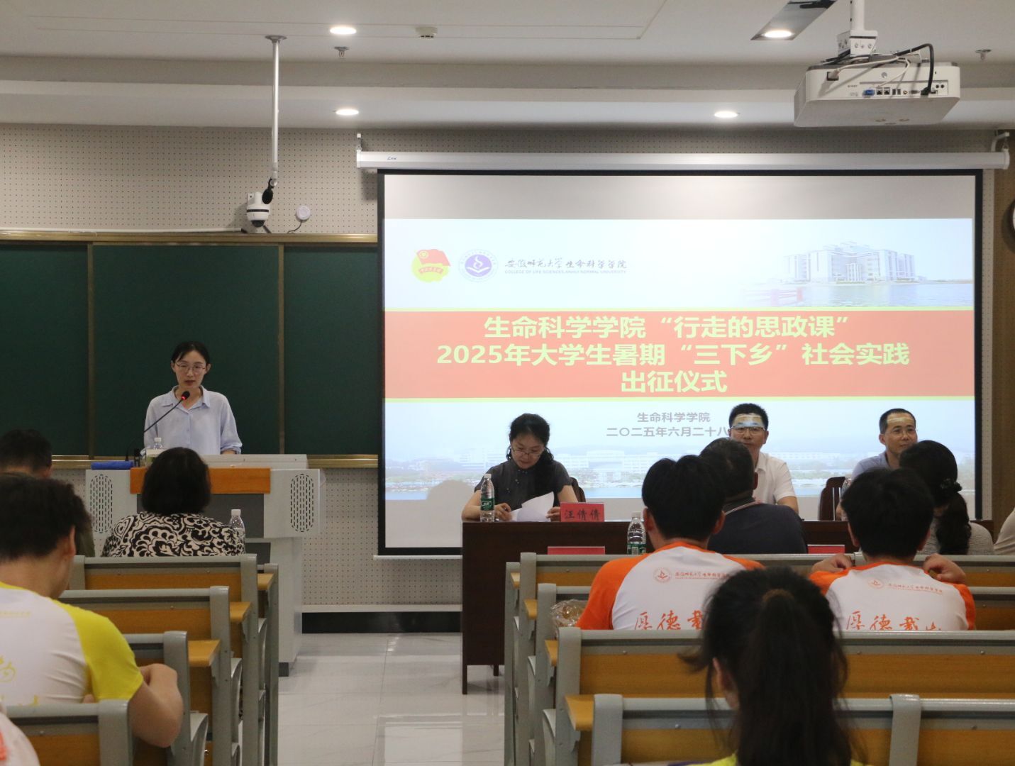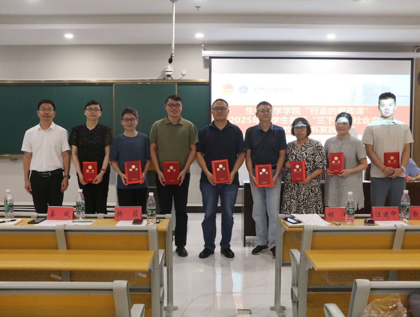 汪倩倩宣读了学院关于2025年大学生暑期“三下乡”社会实践活动的安排意见,学院副院长陈冬生宣读了学院2025年大学生暑期“三下乡”社会实践团队名单,与会领导为指导老师代表发放了暑期社会实践指导教师聘书。