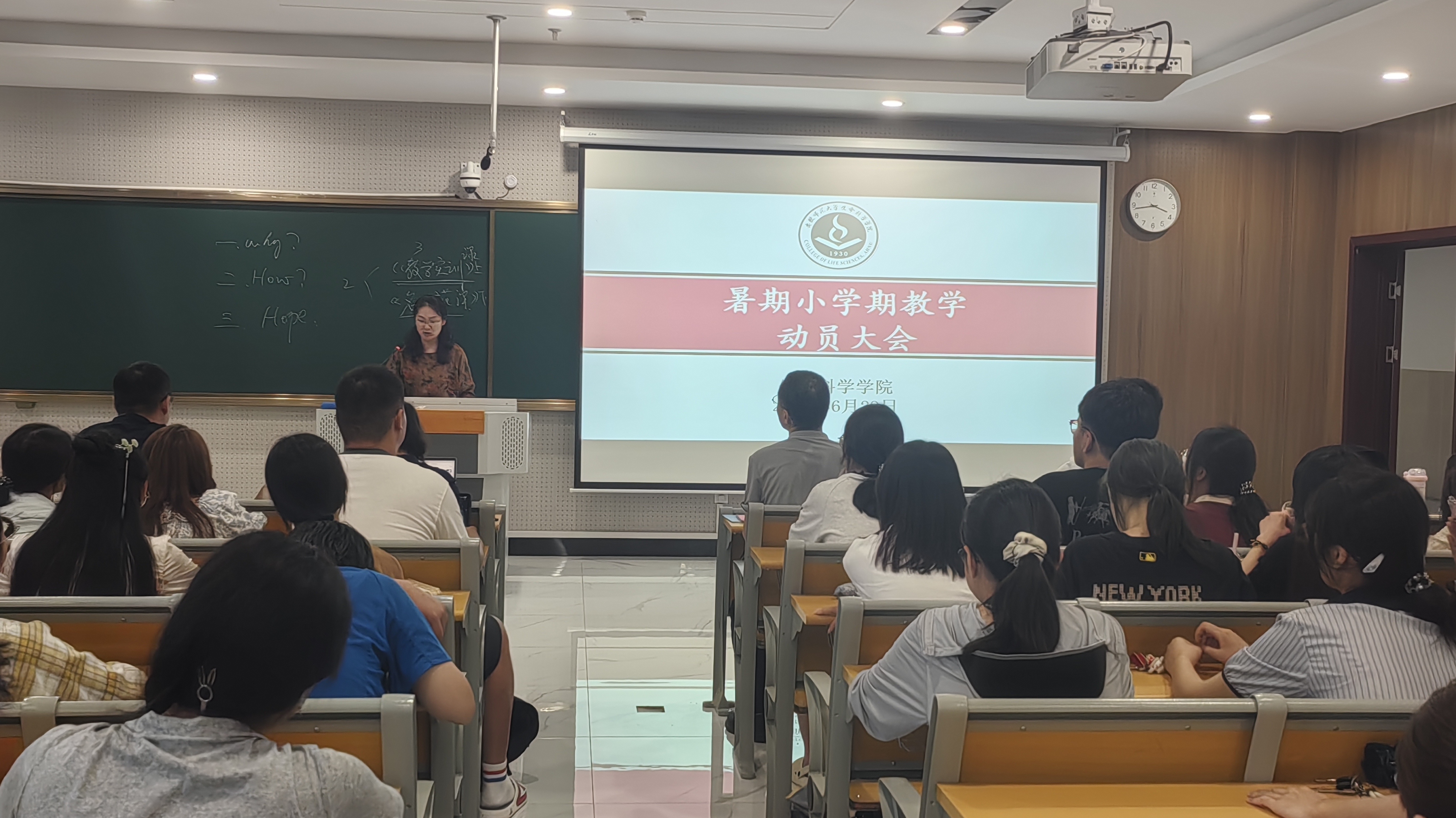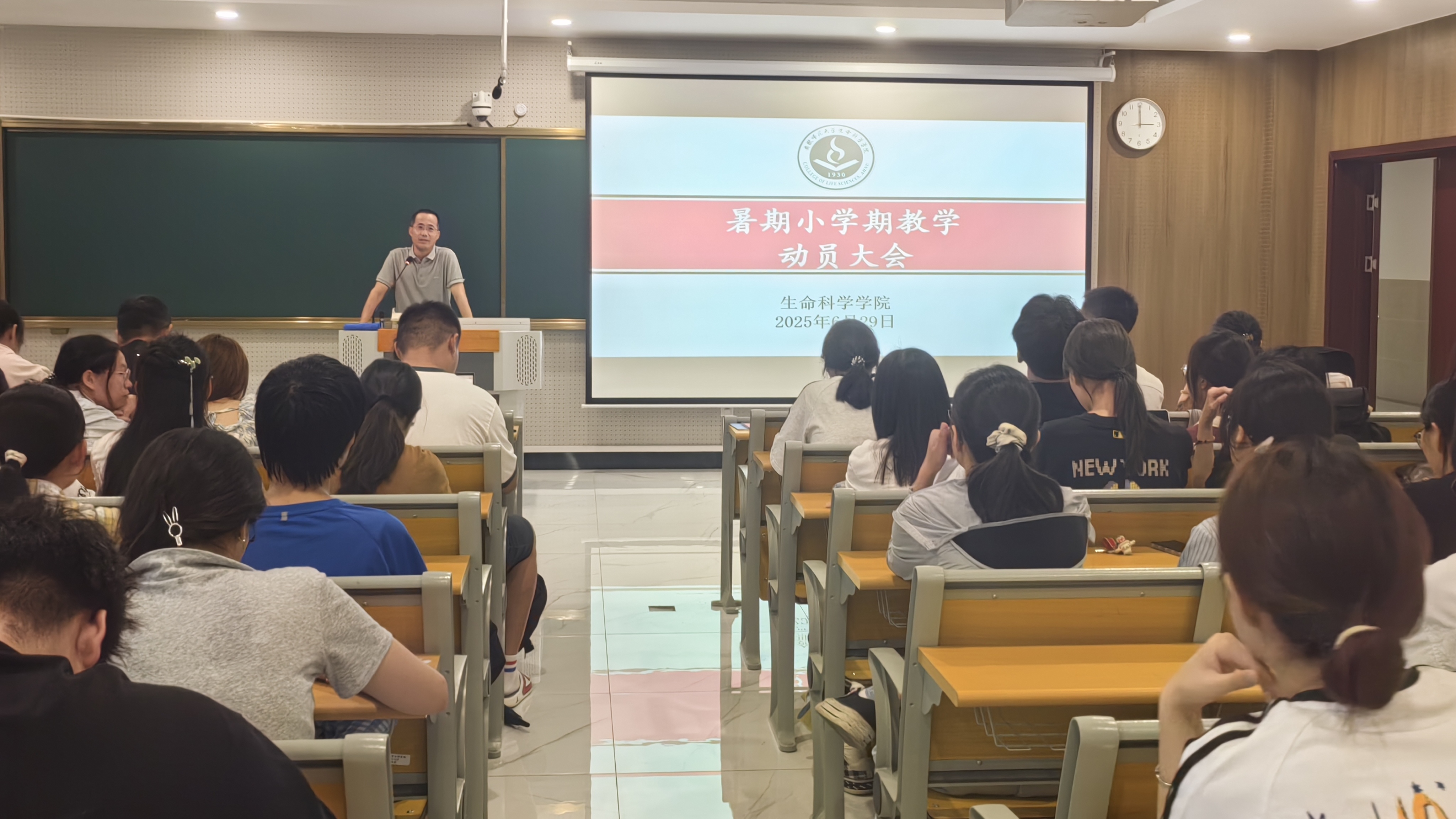 6月29日,学院在清源楼C407教室召开暑期小学期教学动员大会。学院党委书记王少仁、党委副书记汪倩倩、教学副院长陈冬生,专业负责人韩菲、姜斌,班主任汤菊、储谟立、张雁云以及2023级生物科学专业全体参加小学期同学参会。会议由辅导员胡玮主持。