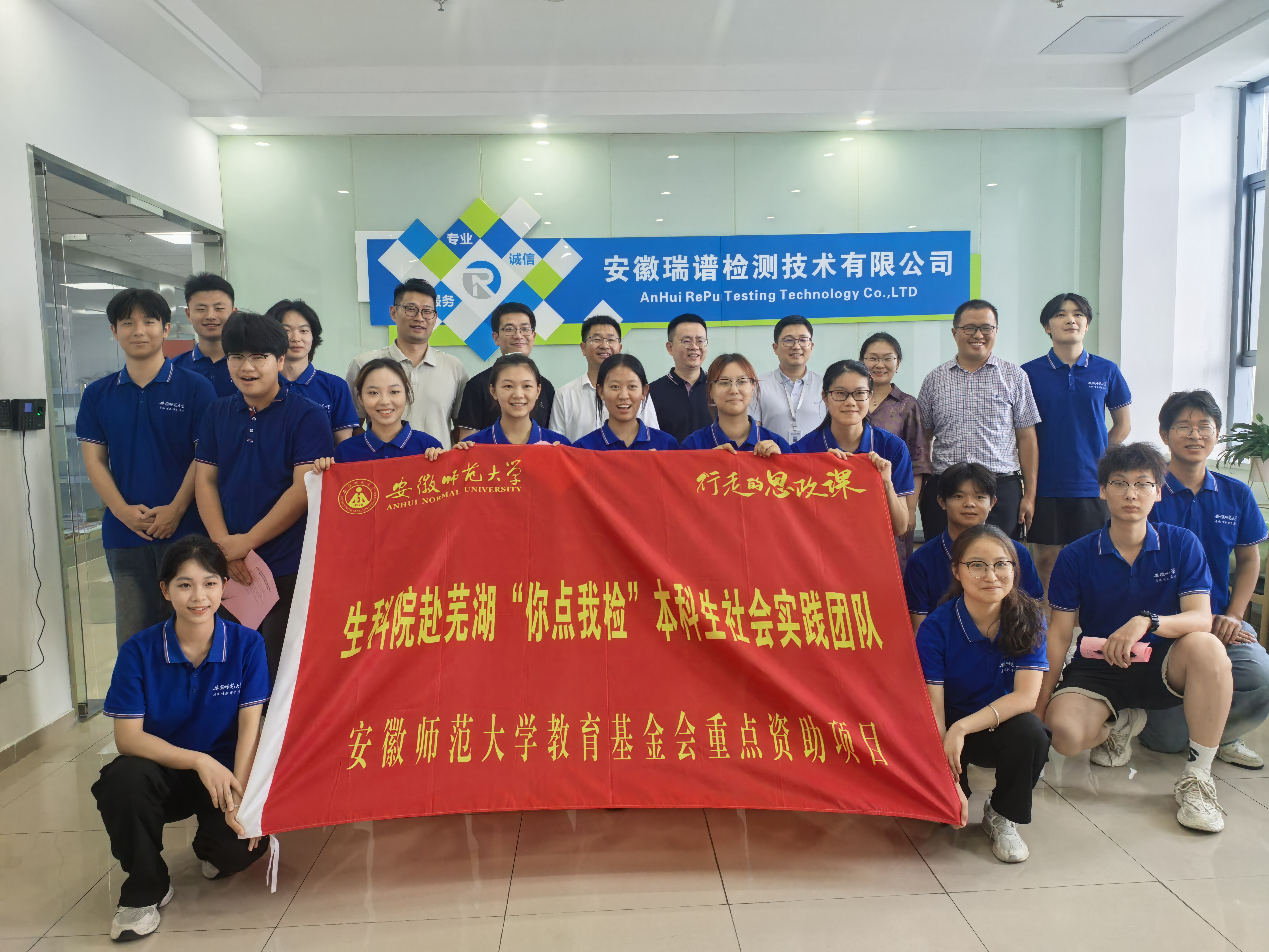7月9日下午,校党委副书记、常务副校长熊宇杰赴安徽瑞谱检测技术有限公司,慰问76net必赢线路检测中心暑期社会实践团队师生,并召开座谈会。校团委书记陈骁、76net必赢线路检测中心党委书记王少仁、院党委副书记汪倩倩、安徽瑞谱检测技术有限公司总经理项威陪同调研。