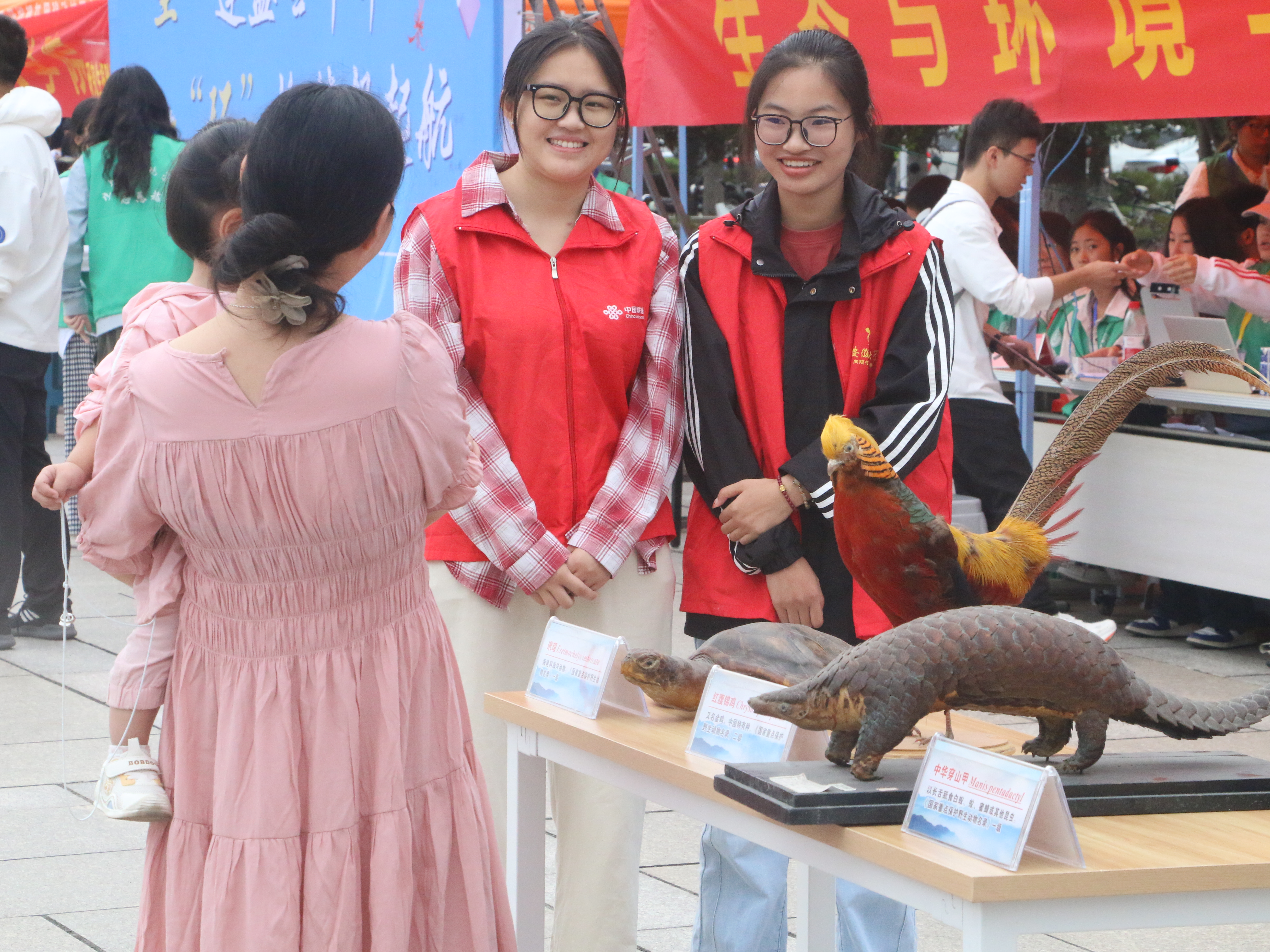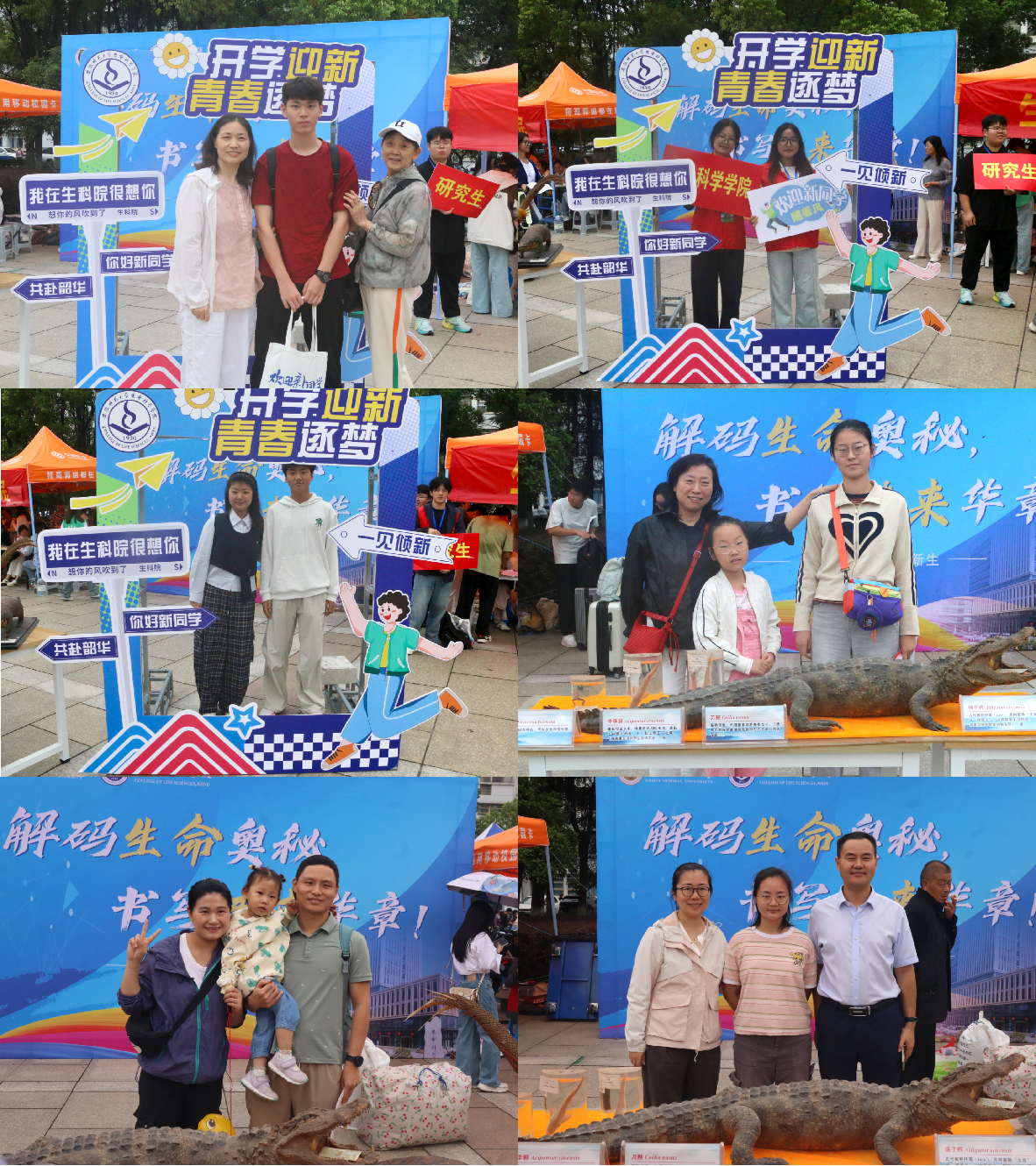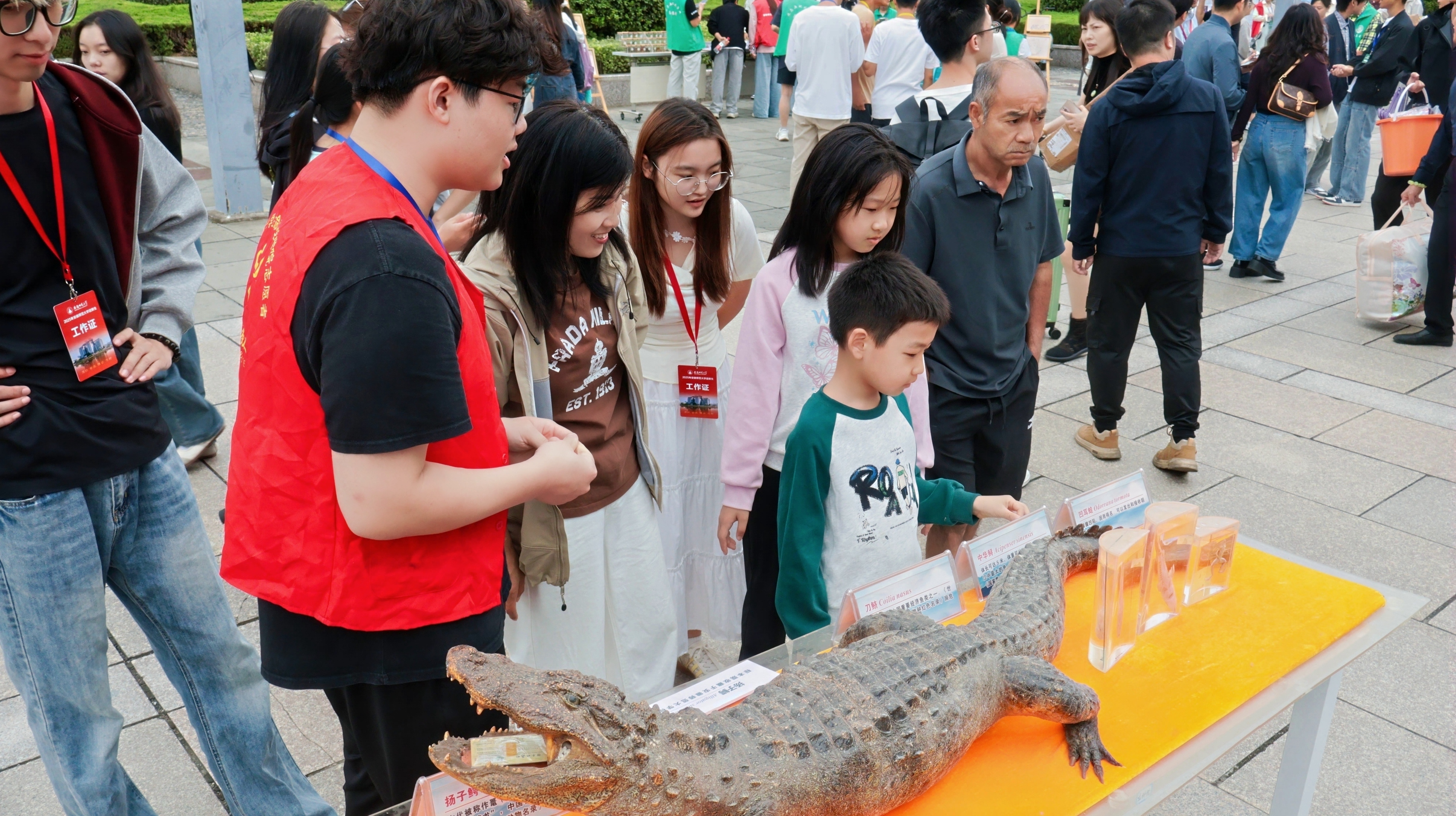 创意展区,专业启蒙“新起点”。学院在迎新报到现场专门设置生物标本展示区,从学院标本馆七万余件馆藏中精选出代表性标本进行展出,其中包括扬子鳄、穿山甲等一批国家保护动物标本,吸引了众多新生及家长驻足观看。科普讲解志愿者们向新生详细介绍标本的科学背景与学科价值,讲解标本馆的建设历程及其在科研与教学中的重要意义,让新生在报到首日便触摸专业温度、感知学科魅力,为开启大学专业学习筑牢基础。
