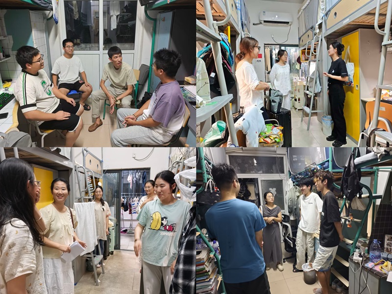 10月8日晚,孙月婷带领全体辅导员深入学生宿舍,围绕返校情况核查、安全隐患排查和卫生环境整治等方面开展专项检查。学工团队每到一间宿舍都仔细查看室内用电安全情况,重点检查是否存在违规使用大功率电器、私拉电线、消防隐患等问题,并与同学们深入交流,询问大家的学习生活状况与生活需求,叮嘱同学合理安排学习与休息时间。一句句叮嘱、一声声关怀,让同学们感受到了学院大家庭的温暖。