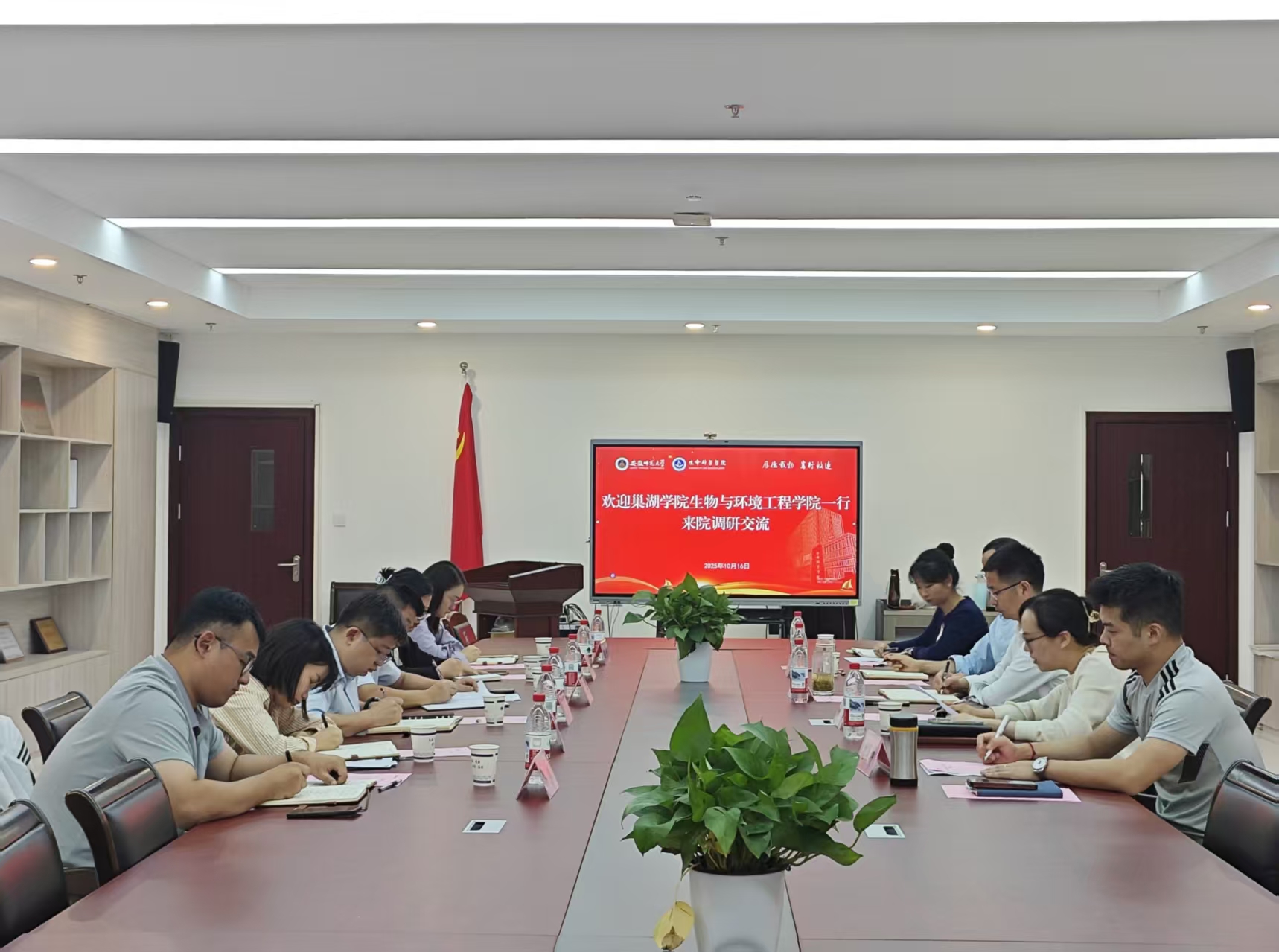 10月17日,巢湖学院生物与环境工程学院党委书记郭超,党委副书记、纪委书记张凌,副院长晏娟一行来我院开展调研交流。我院党委书记王少仁,党委副书记、纪委书记孙月婷,教学副院长陈冬生等参与座谈。