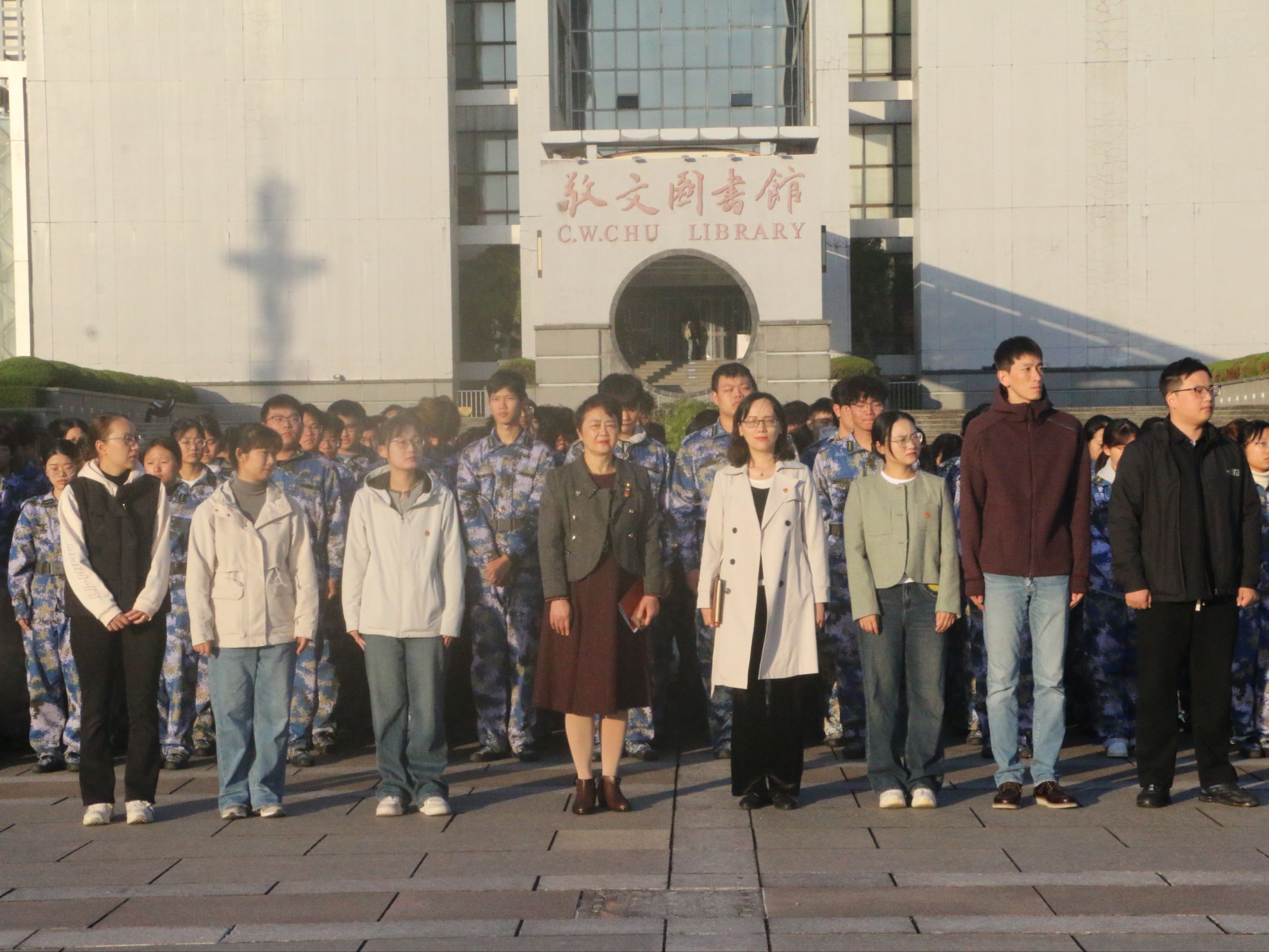 为进一步加强青年学生的爱国主义教育,培养学生的国家意识和家国情怀,10月24日清晨,76net必赢线路检测中心在敬文图书馆东广场举行“国旗下的思政课”主题校园升国旗活动。76net必赢线路检测中心党委副书记、纪委书记孙月婷,生物技术专业教师刘爱民,全体专兼职辅导员,2025级本科新生以及其他年级本科生代表参加活动。活动由学院团委书记魏泽坤主持。