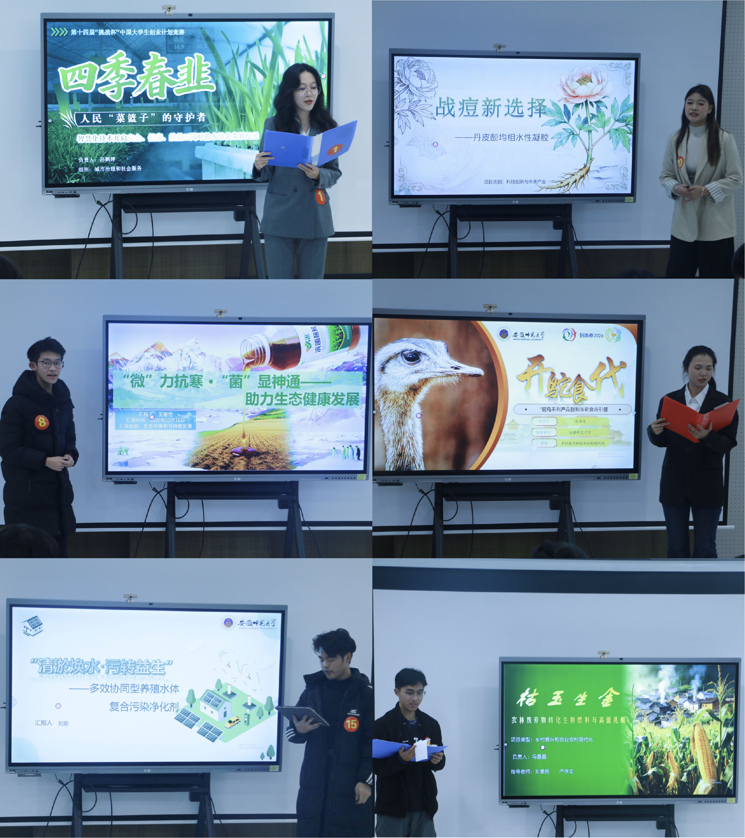 学院团委经过动员组织,共组建了30支项目团队,根据项目推进与准备情况,遴选了15支团队进入院赛汇报答辩会。各参赛项目负责人以PPT汇报形式,围绕研究背景的现实意义、技术路线的创新突破、产品原型的核心优势、应用场景的实践价值及未来发展的长远规划展开全面阐述。参赛作品聚焦生命科学前沿领域与社会实际需求,既有对基础学科问题的深度探究,也有面向行业痛点的技术革新,充分展现了生科学子立足专业、求真务实的科研态度与开拓创新的青春风采。