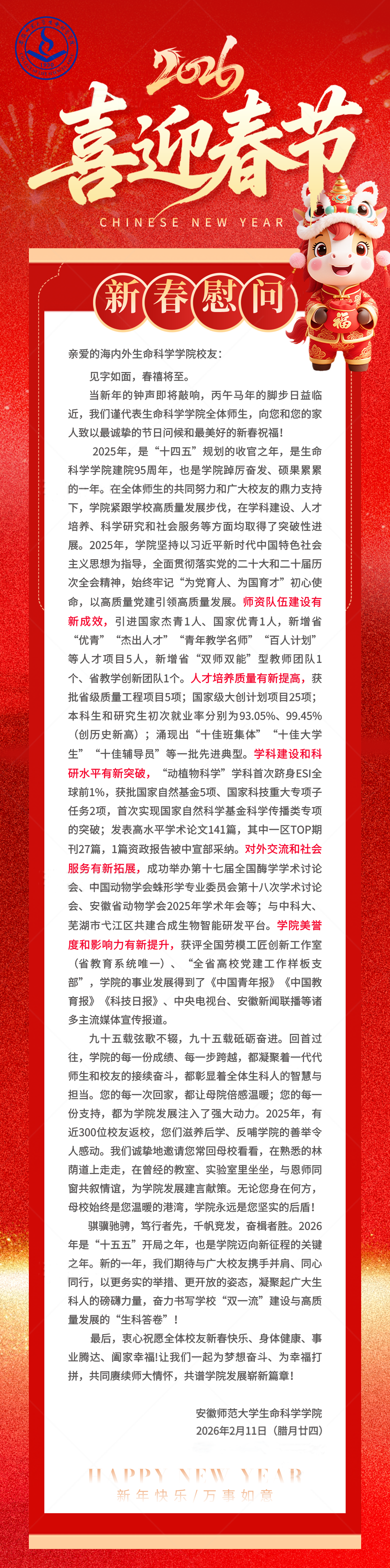 76net必赢线路检测中心致全体校友的春节慰问信