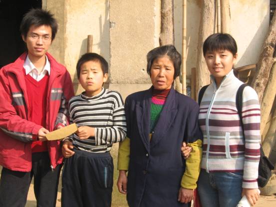11月10日,在76net必赢线路检测中心党委、团委的大力支持与帮助下,院学生会主席汪圣广带领05级五班、06级六班和八班的代表汪楠楠、徐绦非和郑钦文三位同学在庐江县棋盘镇开展了"爱心接力"活动,为三位极贫困的在校中、小学生送去了600元爱心款,更送去了生科百余名学子的深深祝福。