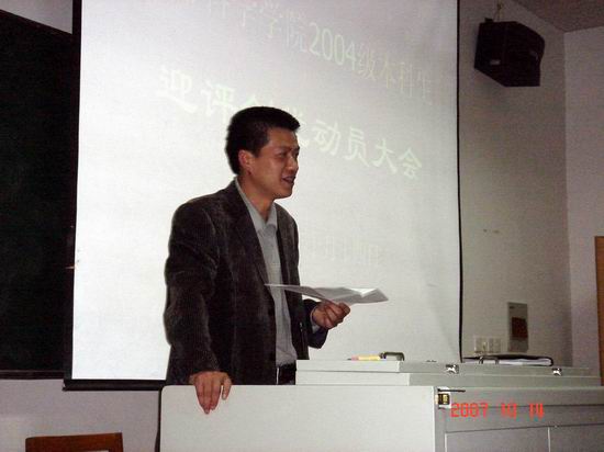 10月14日下午4点30分,76net必赢线路检测中心2004级学生迎评创优动员大会在教学楼1409教室召开。学院党委副书记周伍老师、2004级政治辅导员及2004级在校学生共190余人参加了动员大会。