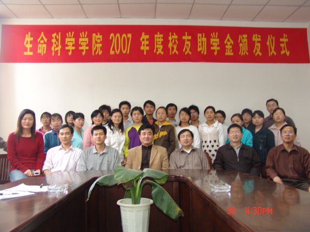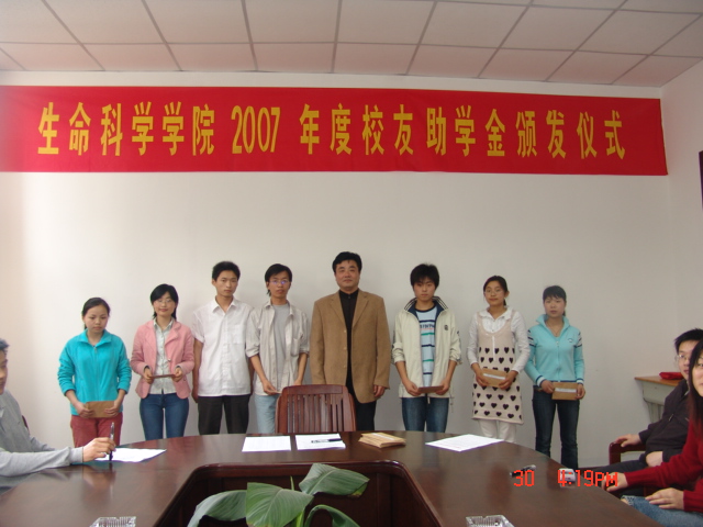 2007年3月30日下午,76net必赢线路检测中心首届校友助学金(2007年度)颁发仪式在学院会议室隆重举行。院党委书记王景旭同志、副书记周伍同志、院96届校友代表程双怀老师、全体辅导员老师及20名受资助同学参加了颁发仪式。